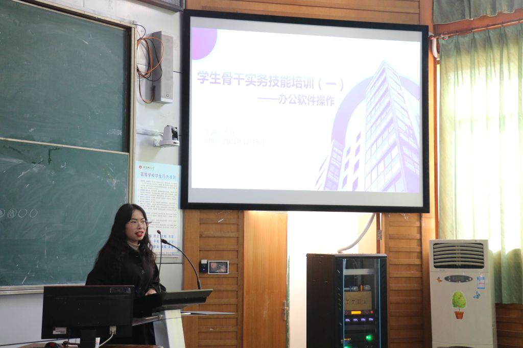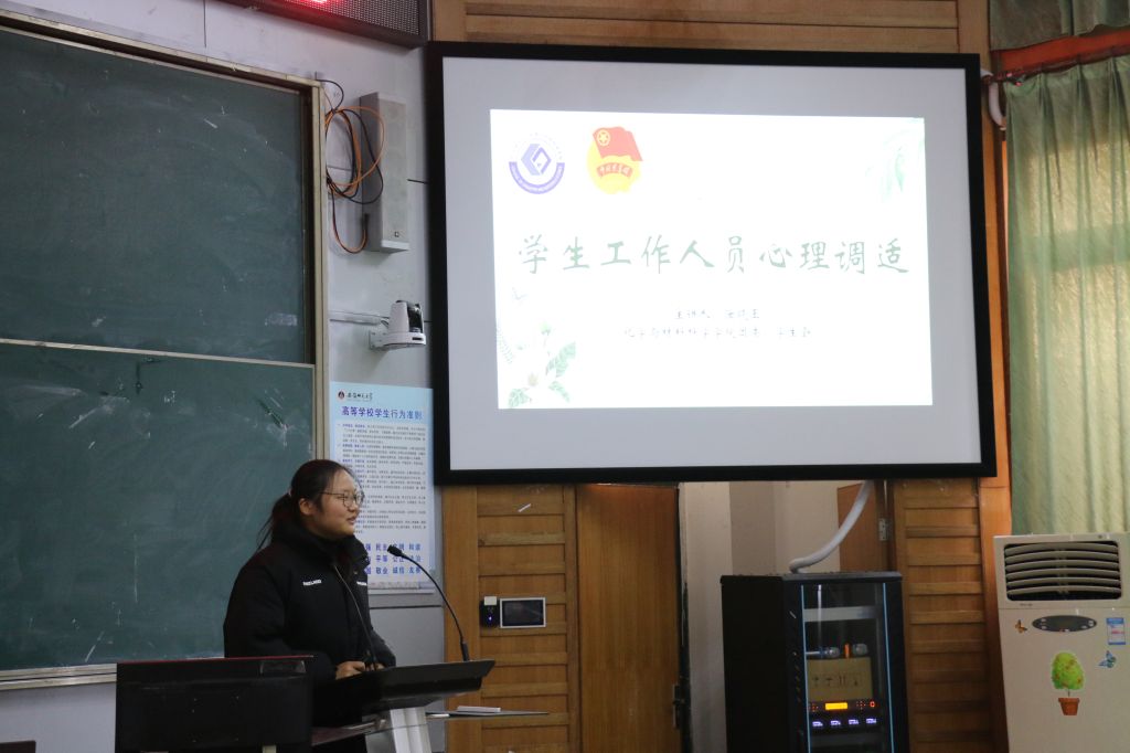 为提升实践工作能力,发挥学团组织自我管理、自我服务、自我管理、自我监督职能,高年级学生骨干结合亲身体会开展了四场次实务技能专题培训。院学生会主席团成员沙凝进行了办公技能专题培训,包括常用办公软件的基本操作、文本格式的设置调整、材料撰写的规范等。院团委学生副书记吴泓婧从新闻稿的类型、基本内容、图片拍摄等方面进行了新闻稿和活动总结撰写专题培训。在培训课程间隙,全体学员通过观看新闻联播的相关片段,学习了党的十九届六中全会精神。随后学生会主席团成员汝晓玉开展了学生工作人员心理调适的培训,她从“为什么要当学生工作人员”、“学生工作人员应有的心理素质”、“学生工作人员工作时遇到的心理问题”等方面进行展开,提醒各位学生工作人员要擅于自我调整,以积极的心态面对学生工作。培训会议的最后,章志诚首先结合自身学生工作经验,与大家交流如何坚守工作人员初心,接着简要介绍并分享了ps,excel等软件常用操作及应用知识,最后与全体学生工作人员共同学习习近平总书记对青年的寄语,勉励大家不忘初心,砥砺前行。