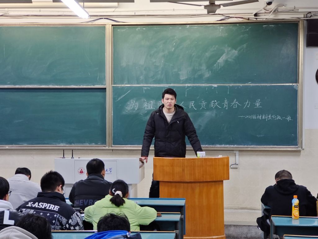 2021级材料类辅导员梅冠东带领班级同学召开“为祖国和人民贡献青春力量”的主题班会。2021级材料类顾紫琼同学作为学生代表,带领全体同学阅读并学习习近平回信勉励中国运动健儿的回信。梅冠东强调习近平总书记对冰雪健儿的勉励,更是对我们广大青年的勉励,新时代是追梦者的时代,也是广大青少年成就梦想的时代,我们要以中国冰雪健儿为榜样,在学习和生活中发扬奥运健儿们不怕吃苦,敢于拼搏的精神,在奋斗中点亮精彩人生,为祖国贡献青春力量。同时,要传承和发扬好北京冬奥会留下的宝贵财富,积极主动参与体育健身运动,强健体魄、砥砺意志,凝聚和焕发青春力量。此外,他还为同学们深度剖析了冬奥会中的与材料类专业相关的知识,丰富了同学们的知识面,为学生未来就业规划做出了引导。