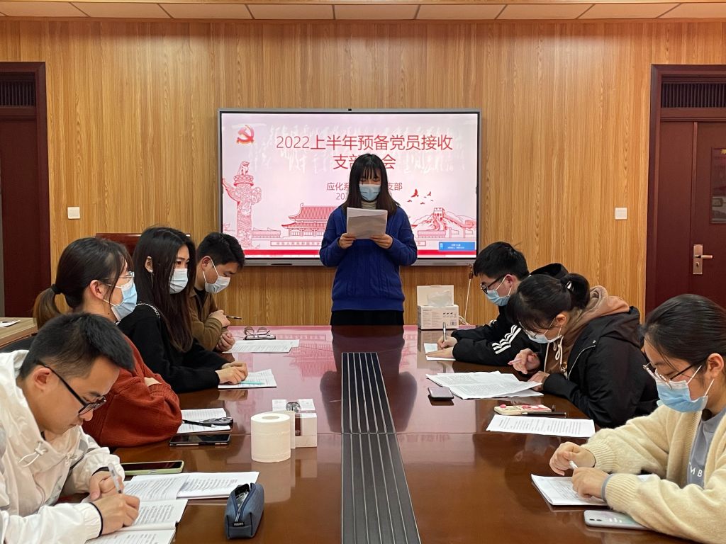 本网讯(应化系本科生党支部 鲁立一)2022年3月30日晚上7点,应化系本科生党支部在礼勤楼707室召开了2022上半年预备党员接收支部大会。应化系本科生党支部全体党员、预备党员、发展对象均按时参会,大会由党支部书记陶勇主持。
