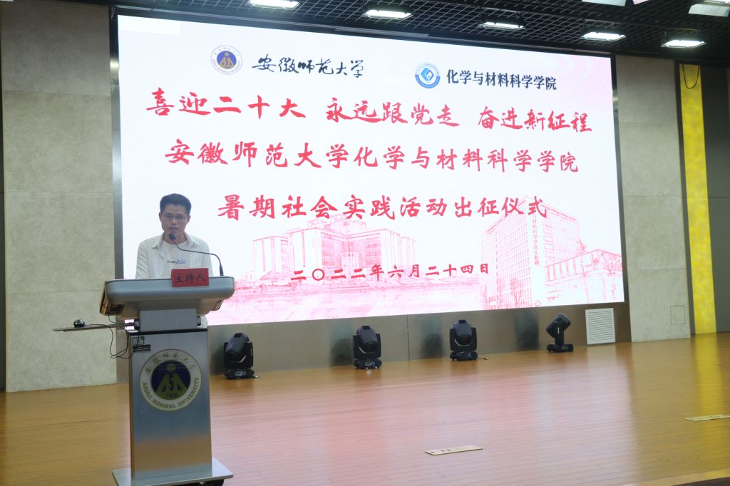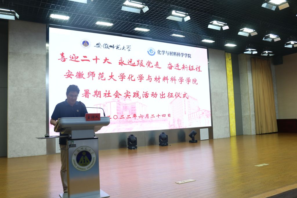 校思政指导老师胡荣涛作指导讲话,他指出,暑期社会实践是以实践引领学习、知行合一的过程,要坚持实事求是,一切从实际出发,实践过程中以马克思主义理论的观点践行实践,解读实践,引领实践;在青春奋斗之时实现自己的人生价值、社会价值,用奋斗、吃苦的姿态对待社会实践,同时保证实践安全,并寄语广大学生要将思政课的政治意识和价值观念、马克思主义观念深深植入内心,将大学生的青年姿态发挥到社会基层,向群众实习,展现出安师大学生的奋斗姿态、务实姿态和青春姿态。
