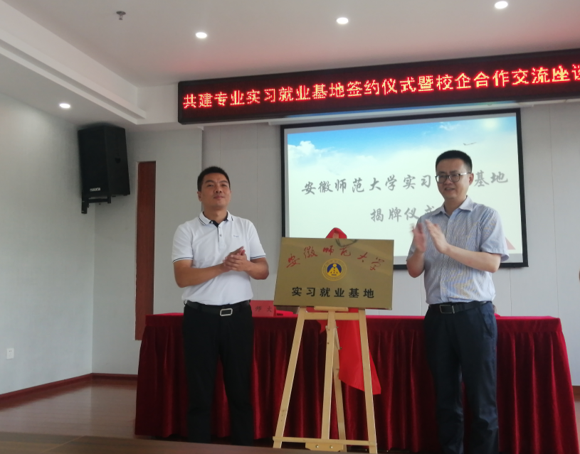 7日上午,安徽师范大学实习就业基地授牌仪式暨校企合作座谈会在安徽蓝格利通新材应用股份有限公司举行。熊宇杰与蓝格利通董事长章健共同为实习就业基地揭牌,孙村镇党委书记何定柱到会见证。仪式上,大家观看篮球比分手机