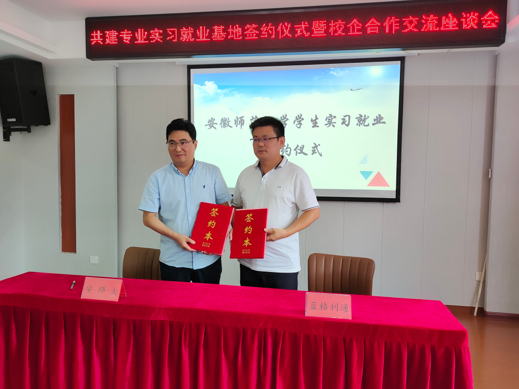 宣传片,蓝格利通技术研发总监汪申学详细介绍了公司情况。熊宇杰介绍了学校情况和毕业生基本情况,希望学校能与企业进一步密切产学研合作,为企业输送更多专业人才,力促科研成果落地转化。高峰与蓝格利通总经理曹仁慧共同签署实习就业协议,双方就校企合作进行深入交流。期间,熊宇杰一行共同参观了蓝格利通研发检测中心。