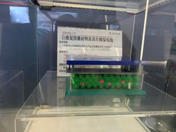 “自修复胶囊材料及其自修复电池”将自修复胶囊应用于动力电池,可以大大提高动力电池的安全可靠性和长期循环稳定性。经过国家相关标准的测试分析,运用了自修复微胶囊技术的动力电池各项指标均表现优异。展品集中交接仪式后,刘金云教授接受了合肥新闻频道的专访(视频链接://mp.weixin.qq.com/s/hynquvrTyWWENIrwAY07Fw),在采访中表示“自修复胶囊材料可以在一些苛刻使用条件下智能地、自发地修补电子传输的通道,形成新的‘桥梁’,保障新能源汽车动力电池的电学性能稳定”。相关研究得到了安徽省科技重大专项项目的支持。研究成果在安徽创新馆的展示,将促进公众对创新成果的了解,也有助于进一步加强社会对科研创新的关注和热爱。