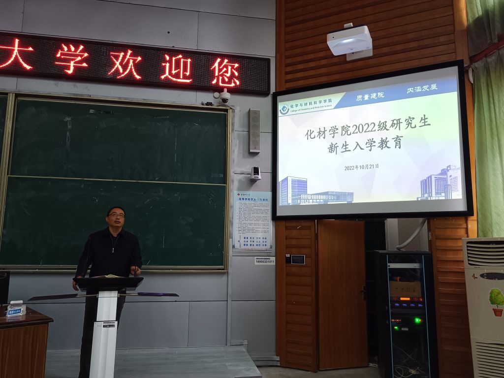 在学院层面进行专题教育之前,各学位点负责人、新生辅导员还通过点内师生见面会、开学第一课等方式开展新生入学教育,积极引导新生扣好“人生第一粒扣子”,帮助他们迈好大学的第一步。学位点师生见面会环节,各学位点的负责人对学位点内的导师以及他们具体的研究方向进行了介绍,从明确目标、有效沟通、积极心态、大量的时间投入四个方面勉励同学们加强学习,努力钻研,早日成为综合素质高、独立工作能力强、能承担国家重任的栋梁之才。各位新生也在了解了各位导师的研究方向后,根据自己的兴趣选取了相对应的导师,明确了今后研究的目标与方向。辅导员新生入学第一课环节,辅导员张薇细致讲解了研究生思想政治教育工作、班风学风培养、研究生日常管理、奖助贷、校园文化活动相关与研究生学习生活息息相关的事务,并且勉励各位新生学会独立思考,争取在科研和课外活动方面书写出崇实求新的精彩华章。