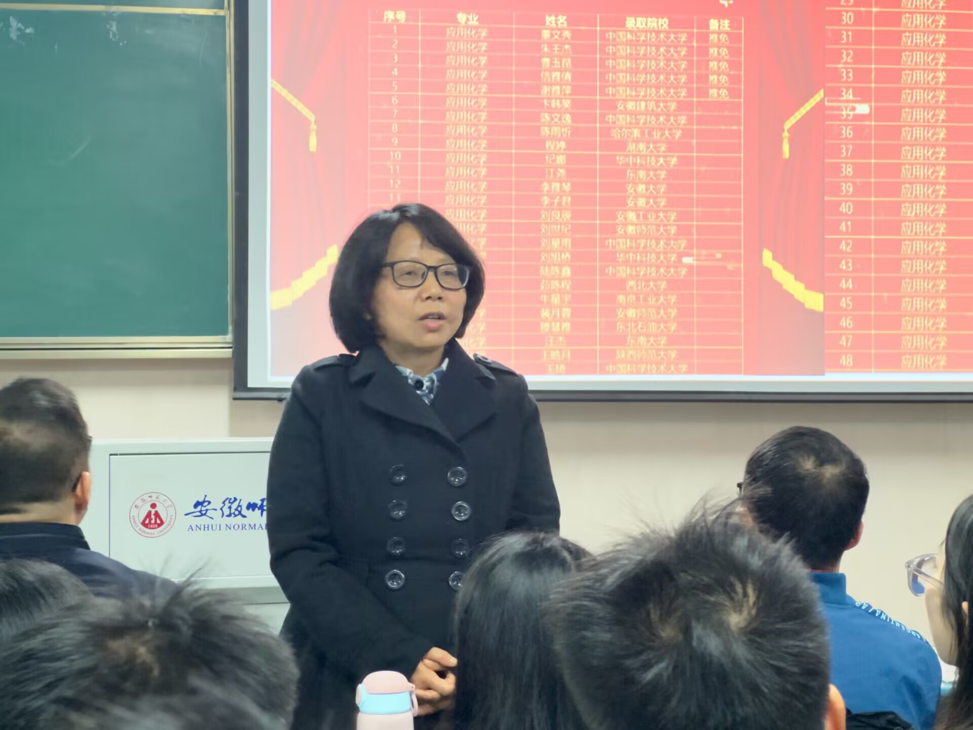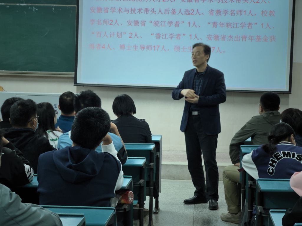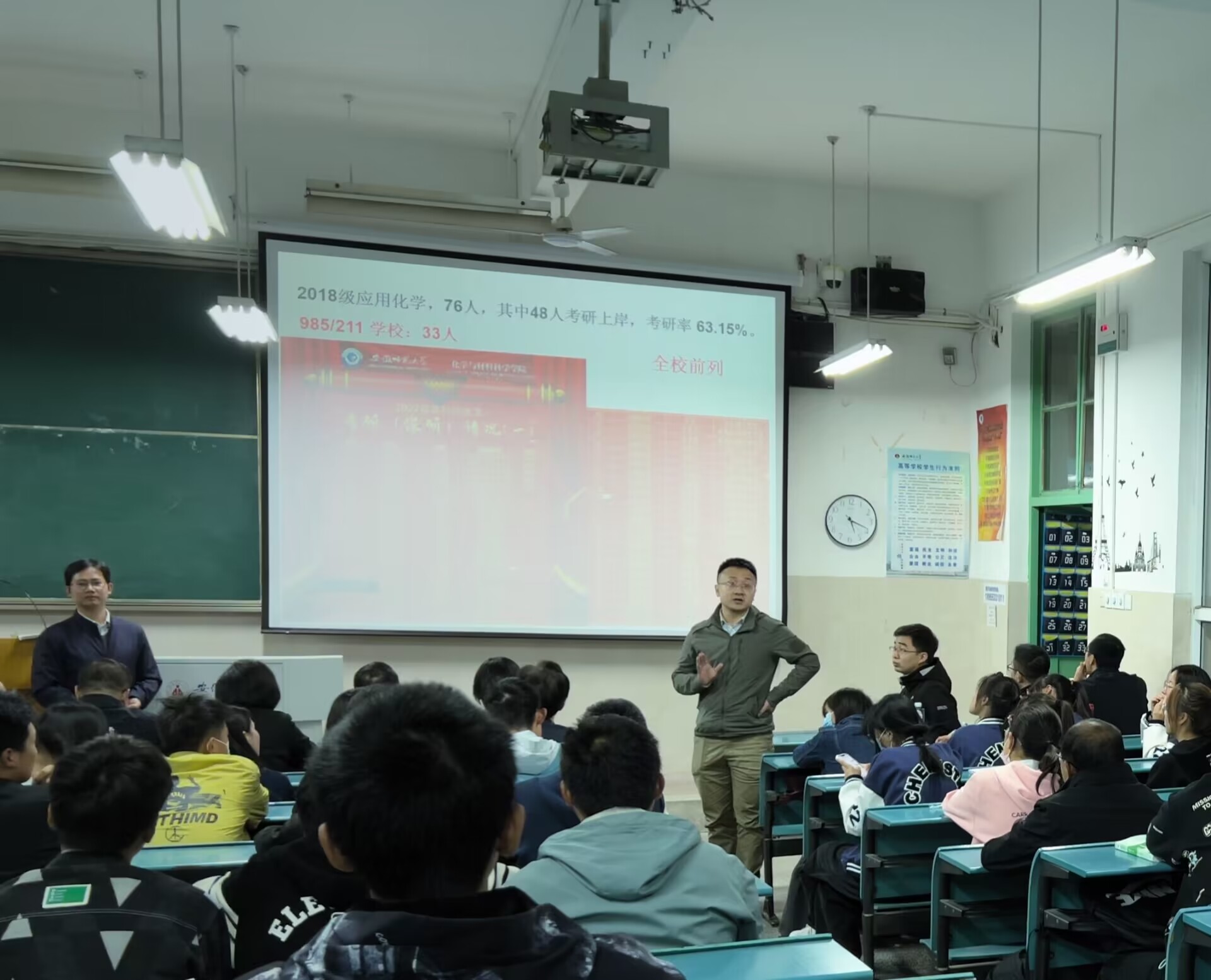 应用化学专业自建系以来的几十年发展历程以及专业师资力量,全员博士的教学团队让人不禁为此自豪。详细向同学们讲解学习应化专业以后的就业方向与前景,展示了本届应化专业学长学姐们优秀的考研成绩,为所有新生树立了榜样!