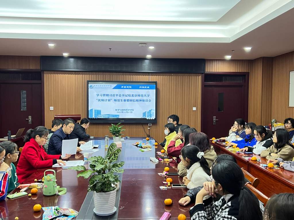 在礼勤楼702会议室举办了“优师计划”师生座谈会,学院副院长方臻,化学教育研究所负责人孙影、辅导员陶勇以及2021级、2022级优师专项43名同学参加了本次座谈会。座谈会由学院党委副书记李古州主持。
