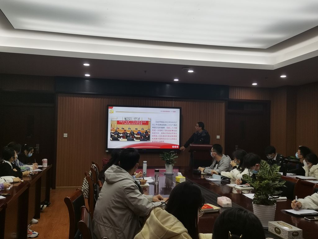 汪俊武以党的二十大的议程为主线,围绕党的二十大的主题——“高举中国特色社会主义伟大旗帜,全面贯彻习近平习近平新时代中国特色社会主义思想,弘扬伟大建党精神,自信自强、守正创新,踔厉奋发、勇毅前行,为全面建设社会主义现代化国家、全面推进中华民族伟大复兴而团结奋斗”,向在座所有党员解读了党的二十大、的历史意义。