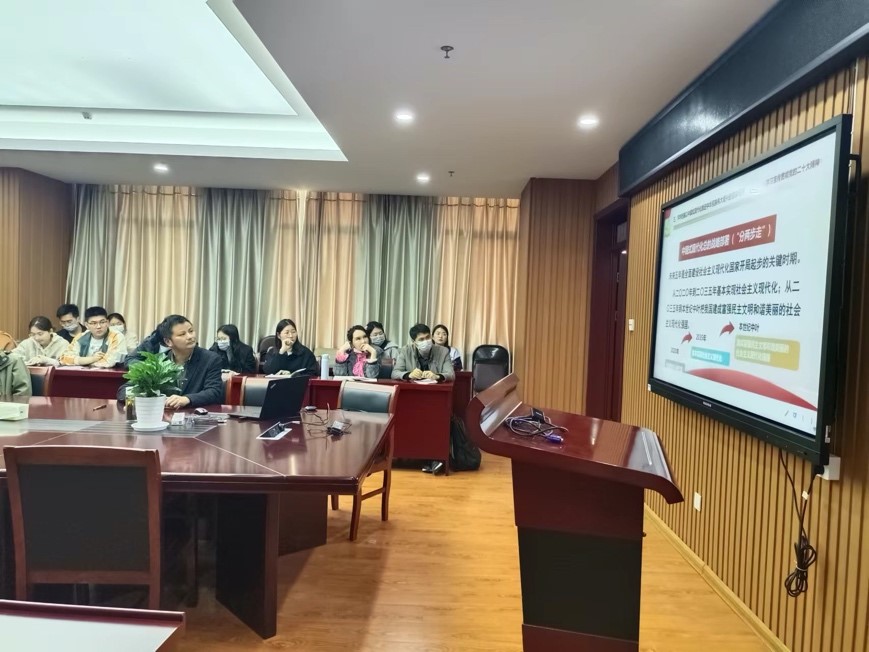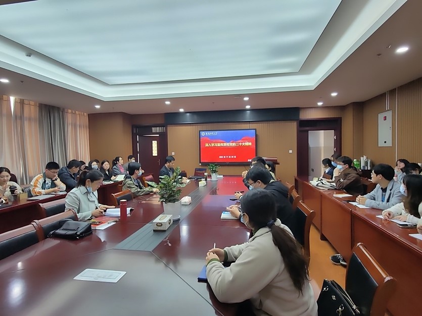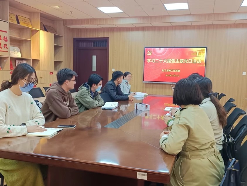 党委委员周双六为化工系教工党支部、研究生第四党支部全体党员讲授“深入学习宣传贯彻党的二十大精神”专题党课,化工系教工党支部书记张小璇主持会议。