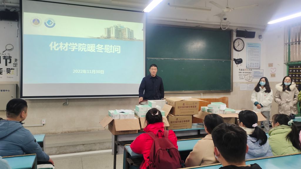 院徽和院训的保温杯,对同学们开展暖冬慰问,为全体贫困生送去初雪后的关怀。