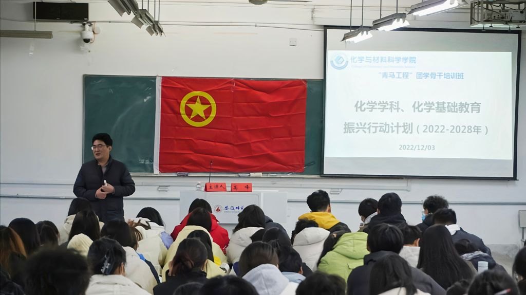 师资力量与主要目标—化学学科在2026年进入全国师范类前五,2028年争取进入“双一流”行列。同时,高院长对“化学+”一词进行了解释说明,他勉励广大青年学生要刻苦学习专业知识,践踏实地,为学校推进落实两大振兴计划贡献力量。