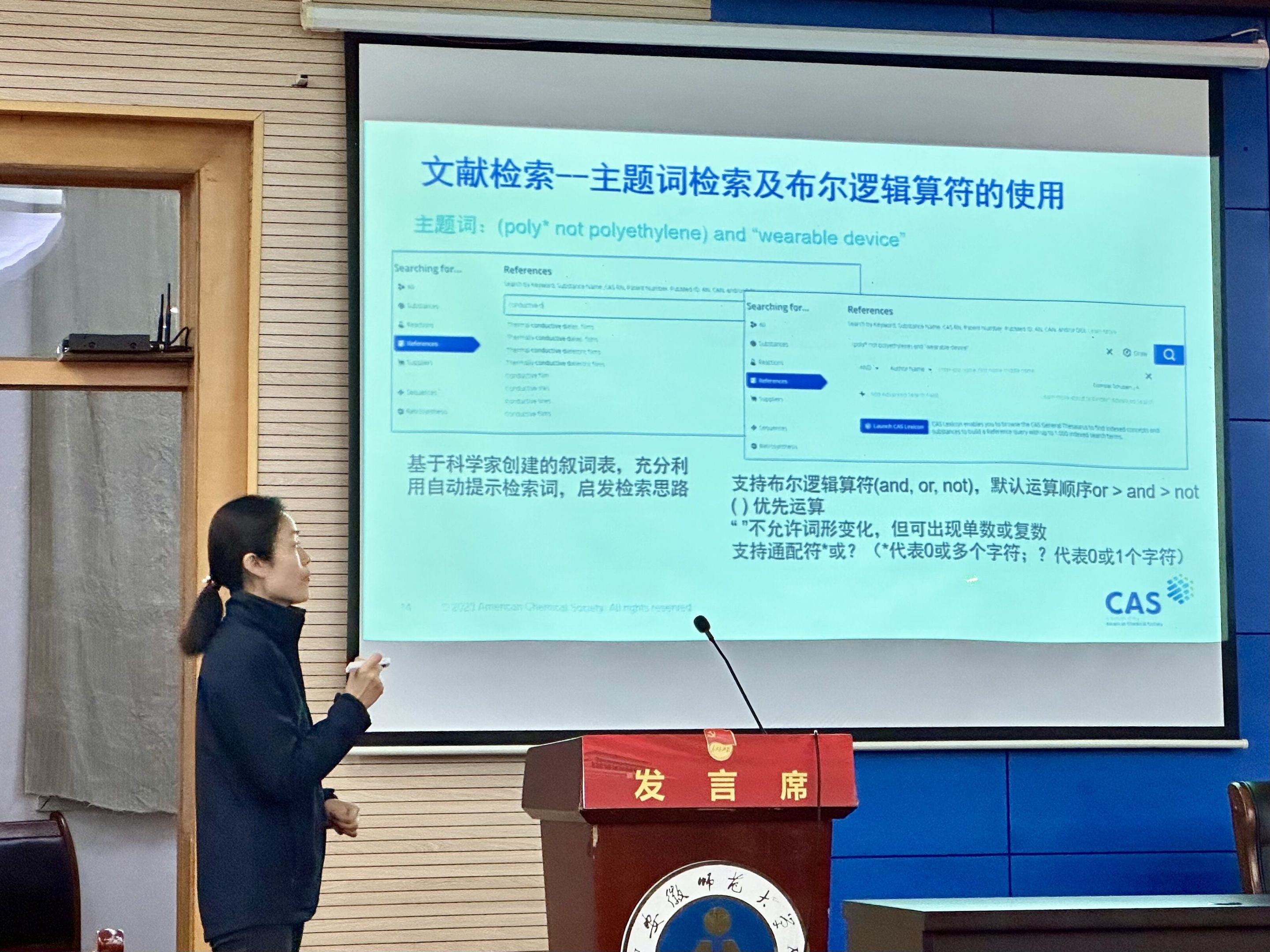 于花津校区会议中心第三报告厅举办题为“全面高效获取科技信息”的文献检索培训会。培训会特邀美国化学文摘社(CAS)学术市场经理朱传娴主讲,学院部分教师及2022级全体研究生参加了此次培训。