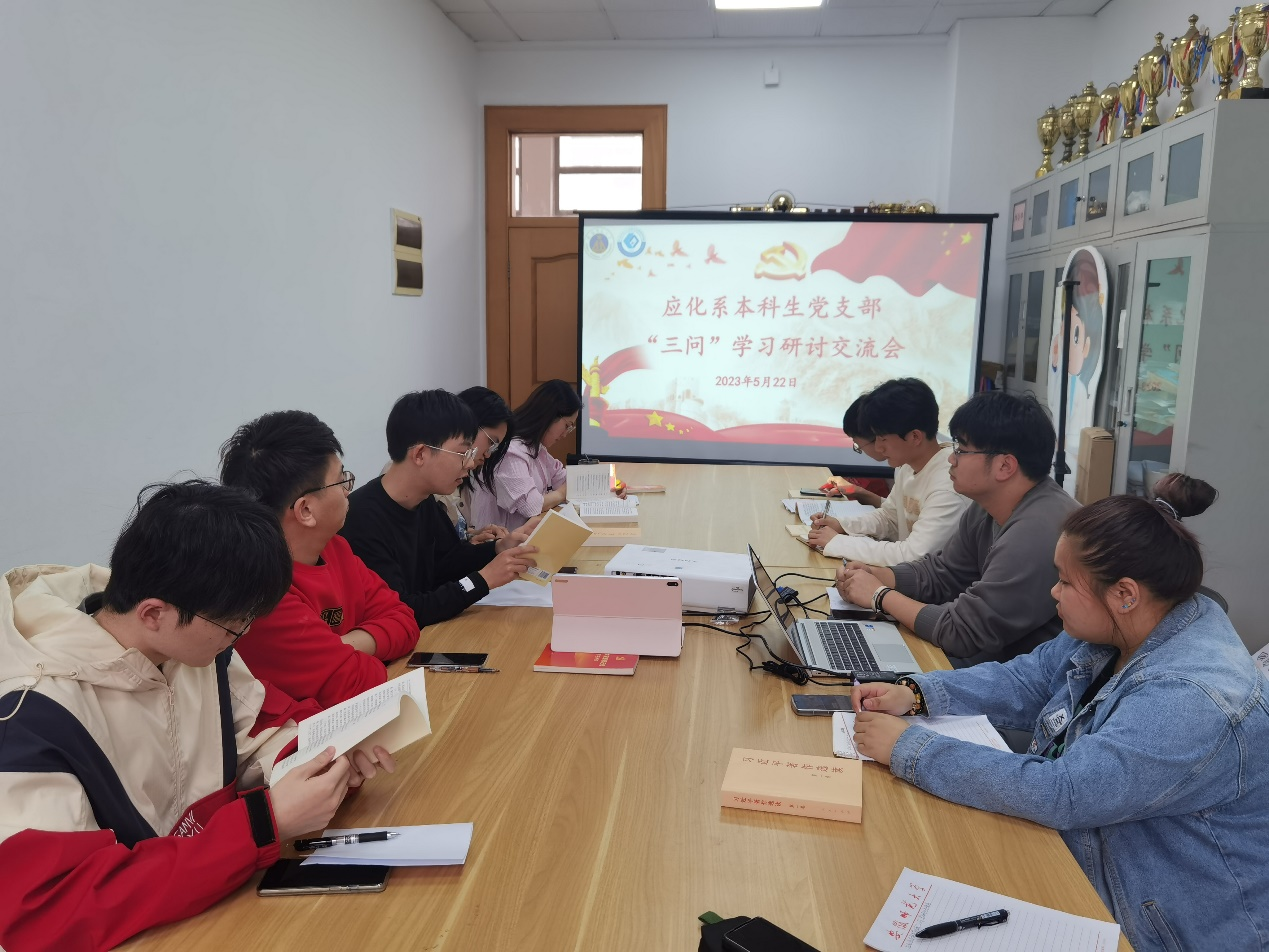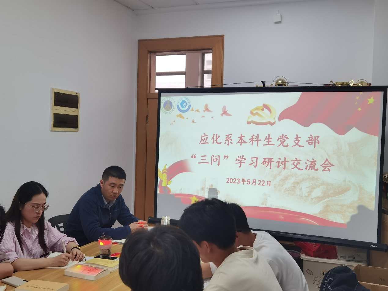 朱会凌、王芳)为深入学习贯彻习近平新时代中国特色社会主义思想,推动主题教育不断走深走实,5月22日下午,应化系本科生党支部在学苑北楼9号楼307会议室召开了“三问”专题学习研讨交流会。学院党委副书记李古州参加会议,党支部全体党员通过线上线下相结合的方式参加会议,会议由支部书记王芳主持。