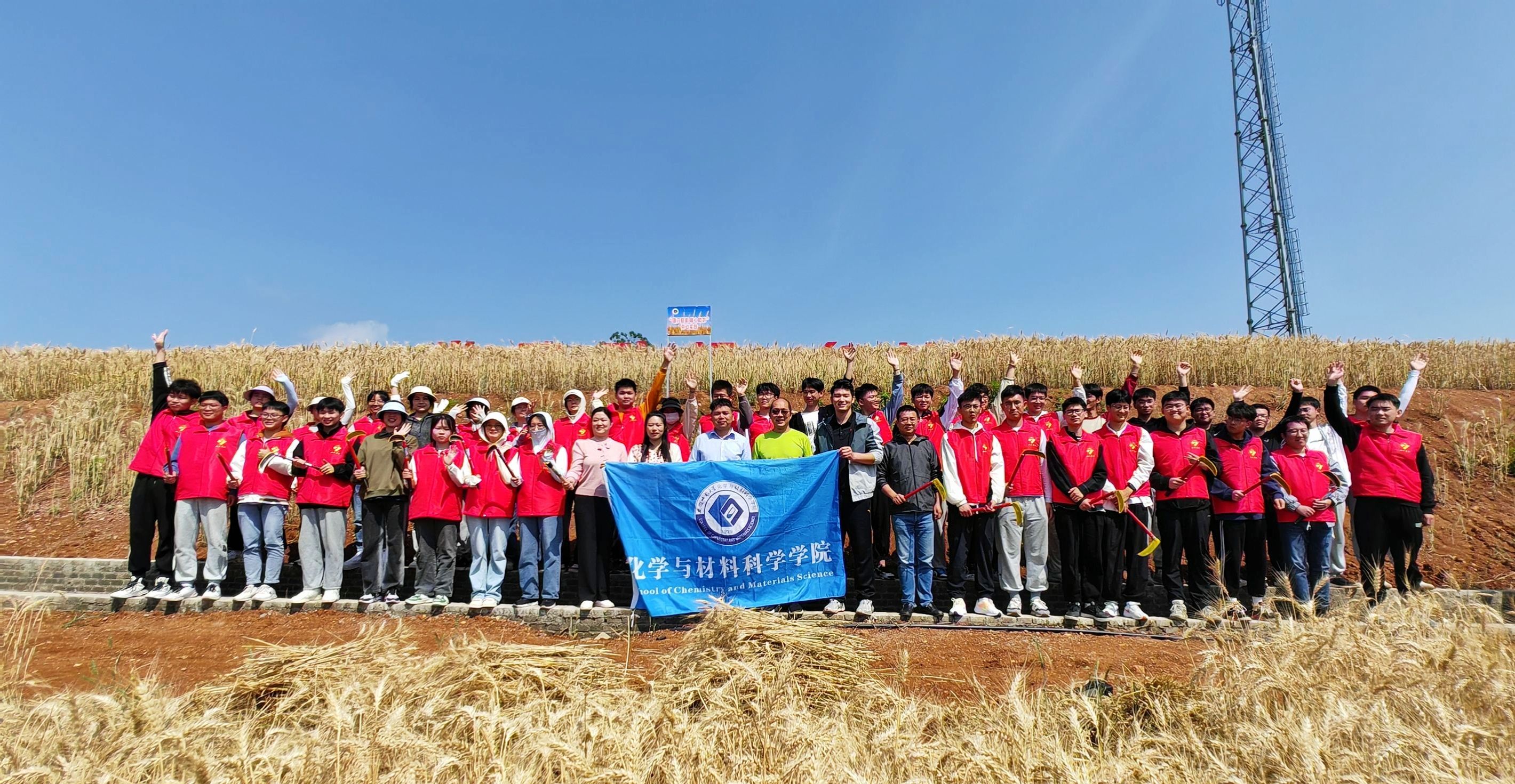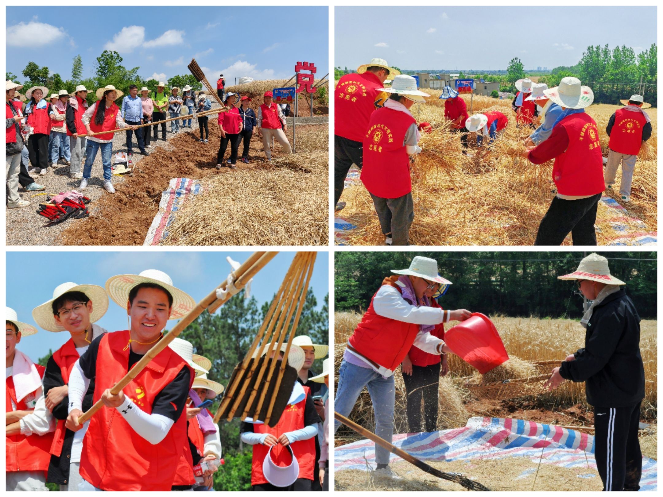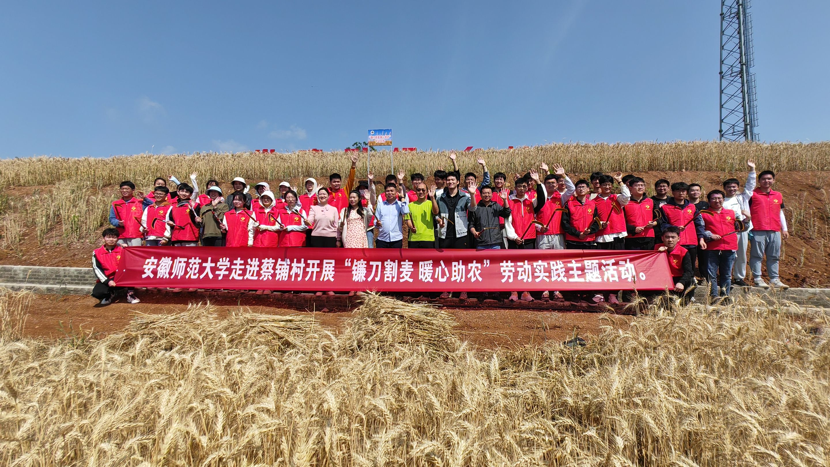 联合总务处组织40余名师生走进安徽师范大学定点帮扶村蔡铺村,开展“镰刀割麦 暖心助农”主题劳动教育实践活动。