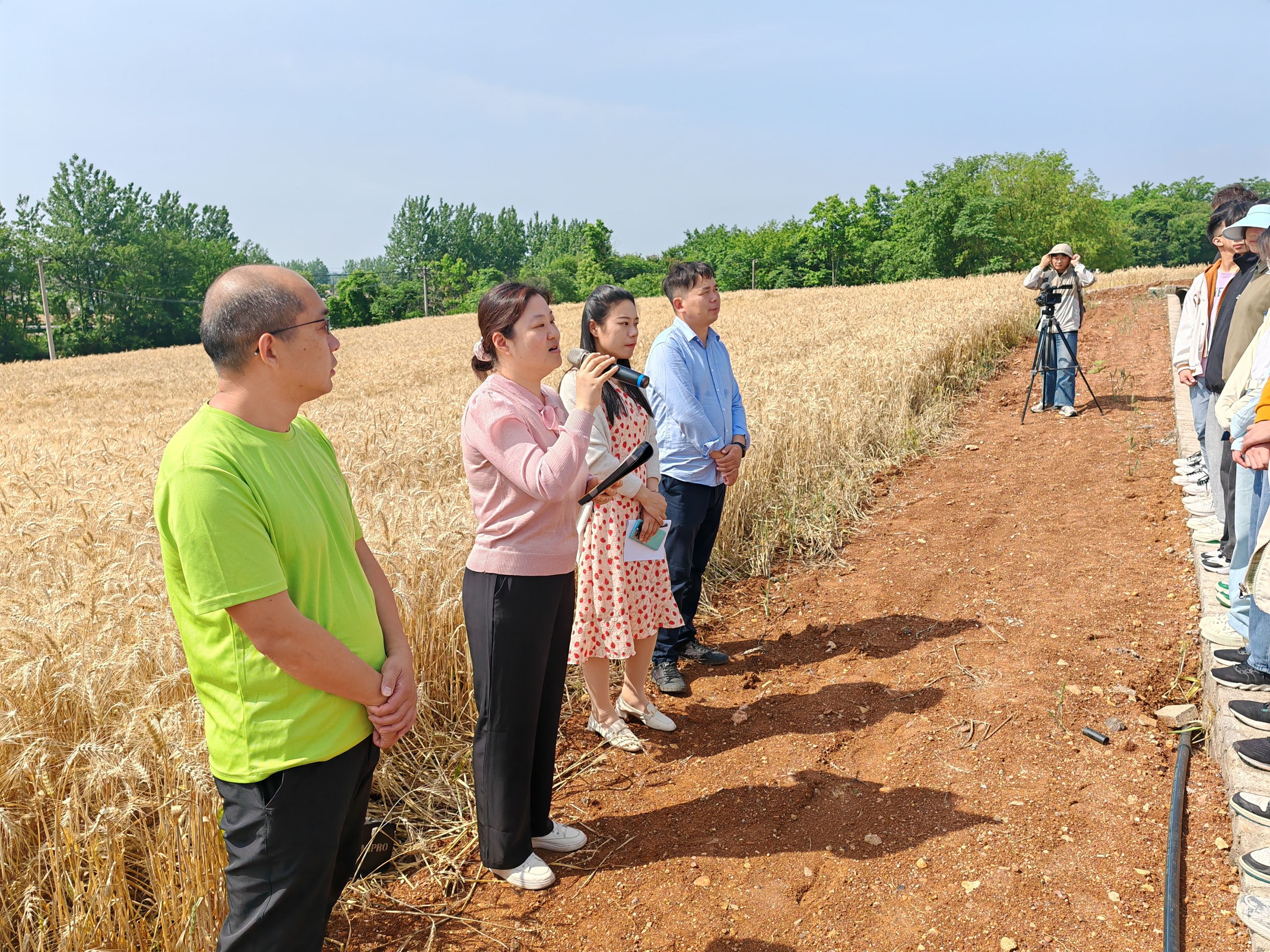 农谚讲:"小满小满,麦粒渐满",恰逢小满时节,连片的麦田从空中俯瞰,如同一块块巨大的金色地毯美丽壮观。开镰仪式由安徽师范大学驻村第一书记李进主持。平铺镇副镇长陈梦云致欢迎辞,向安徽师范大学师生的到来表示热烈欢迎,介绍了平铺镇总体情况及近年来乡村振兴发展成果。总务处副处长胡悦超在动员讲话中向平铺镇、蔡铺村给予的支持表达感谢,她强调,劳动教育是国民教育体系的重要组成部分,具有树德、曾智、强体、育美的综合育人价值,此次活动是学校劳动教育走出校园拓展新形式和内容的一次探索,是引入地方力量参与人才培养的新尝试,希望同学们发扬“自找苦吃”的精神,在实践中受教育、长才干、作贡献、树形象。