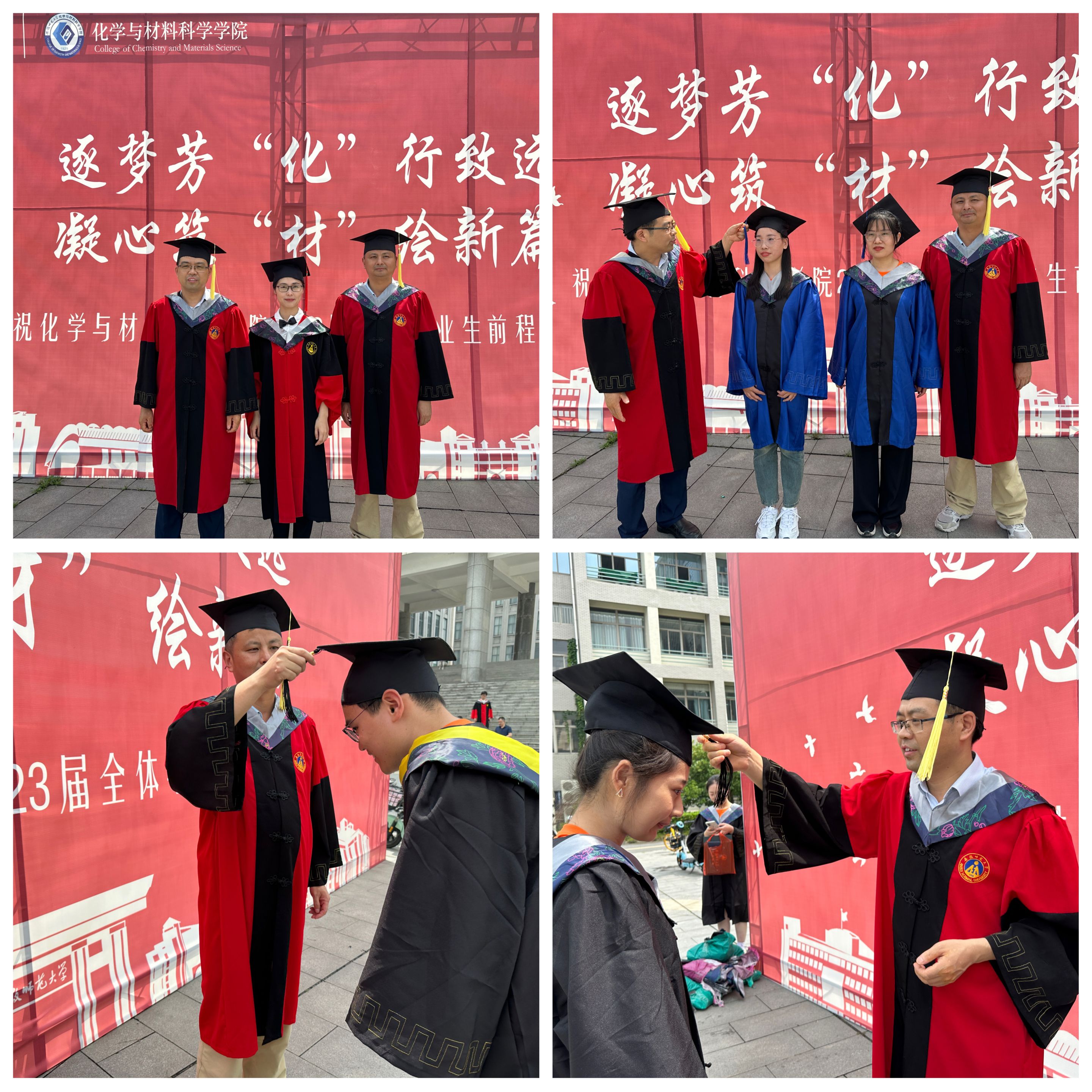 2023届毕业典礼暨授位仪式在礼勤楼广场前如期举行。学院党委副书记李古州、副院长方周双六、方臻,毕业班辅导员陈静、王霞等多位老师亲临现场,为毕业生逐一拨穗正冠。毕业生们与老师、同学合影留念,定格下这一难忘画面。