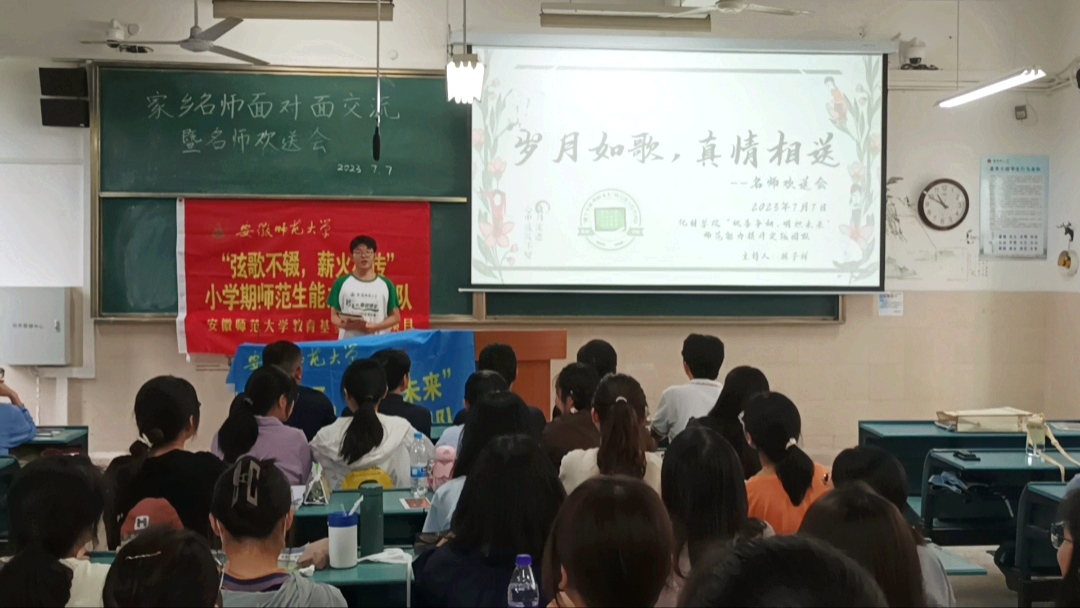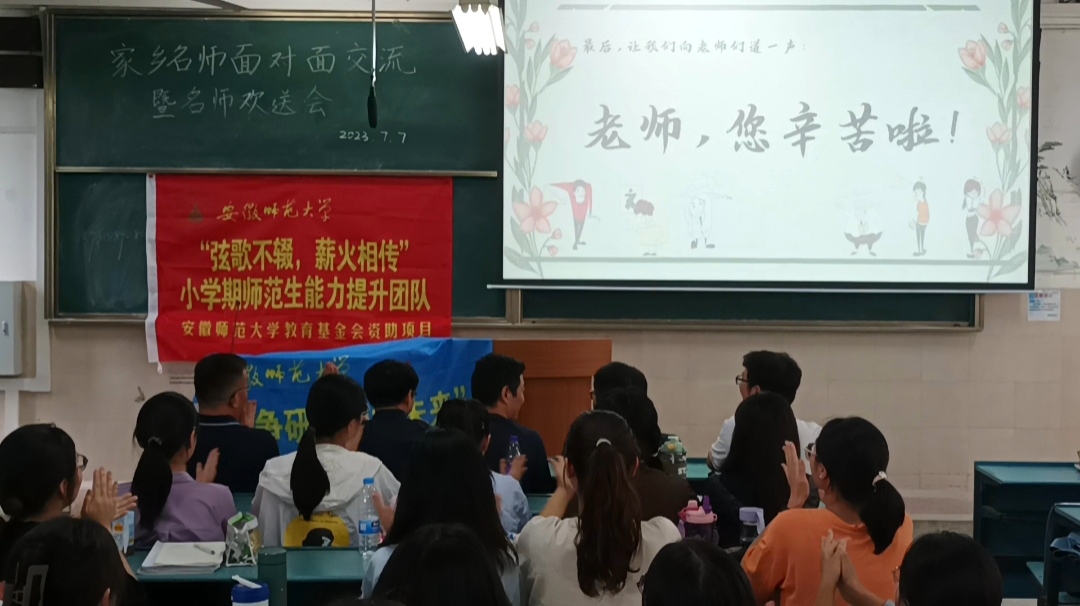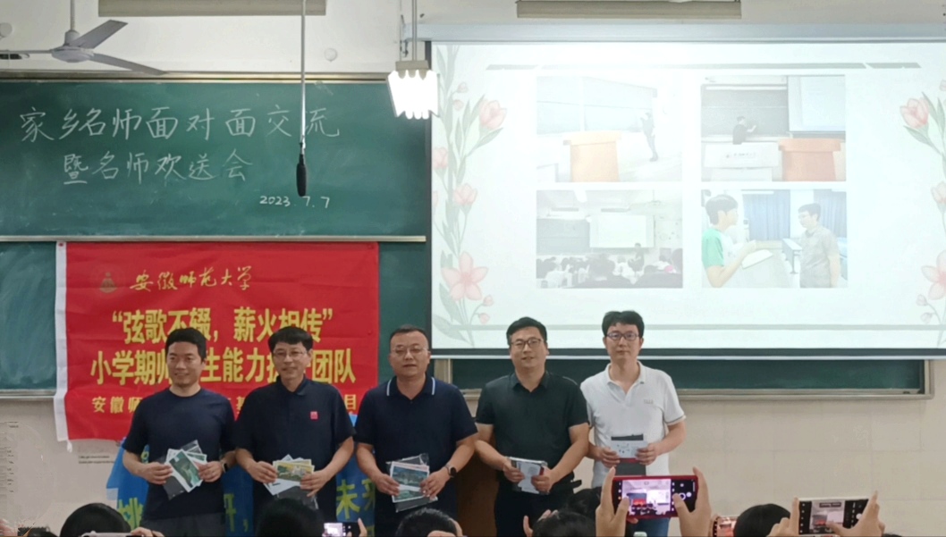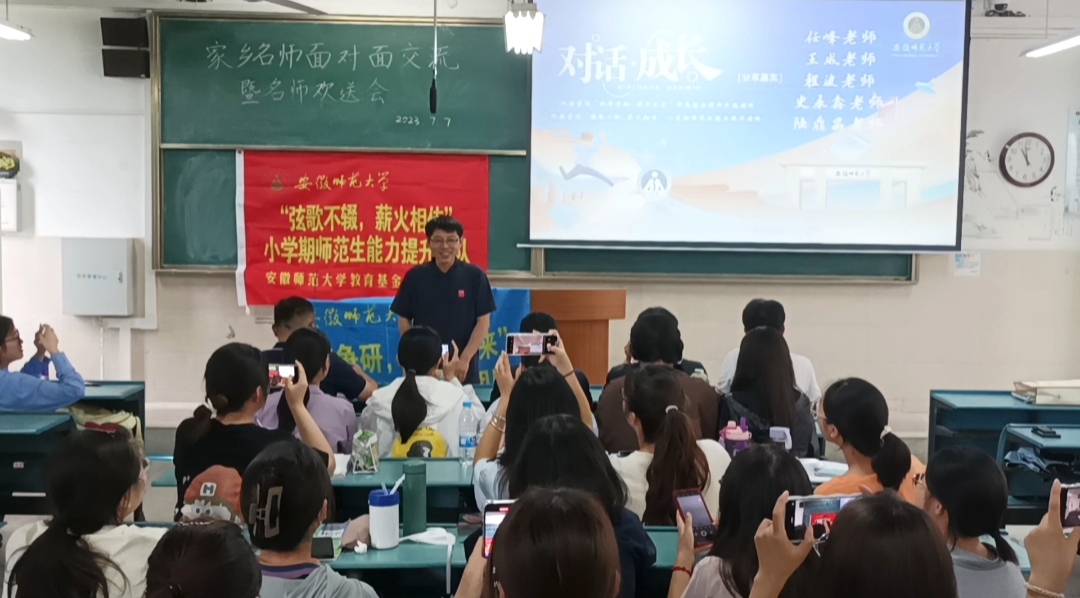 五位名师作为小学期特聘教授,不仅对安徽师范大学开展“基础教育振兴计划”表示肯定和支持,也表达了自己对参加小学期教学的感受。同时,老师们也对同学们未来学习规划提供了宝贵建议。期间,各位老师不断强调:师范生应该持之以恒地学好专业知识、磨练专业技能、造就过硬本领,为投身基础教育事业做好准备。