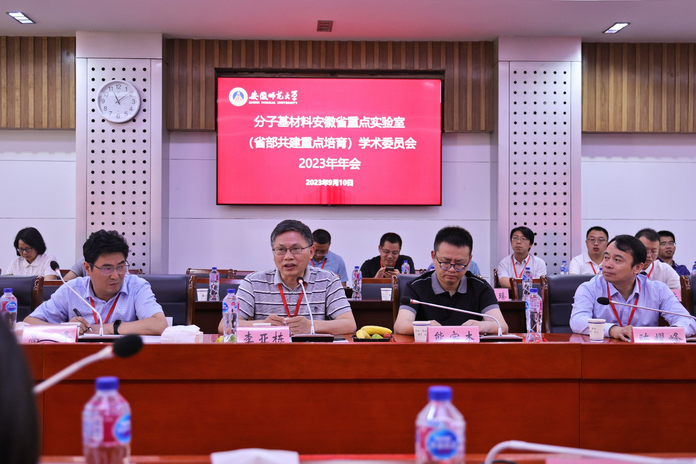 2023年9月10日,分子基材料安徽省重点实验室学术委员会2023年年会在安徽师范大学花津校区会议中心召开。中国科学技术大学谢毅院士、俞书宏院士等学术委员会委员出席会议,校长李亚栋院士,校党委常委、副校长熊宇杰、校党委常委、副校长高峰、发展规划处、人事处、科研处、财务处、资产与实验室管理处负责人及重点实验室成员参加了会议。