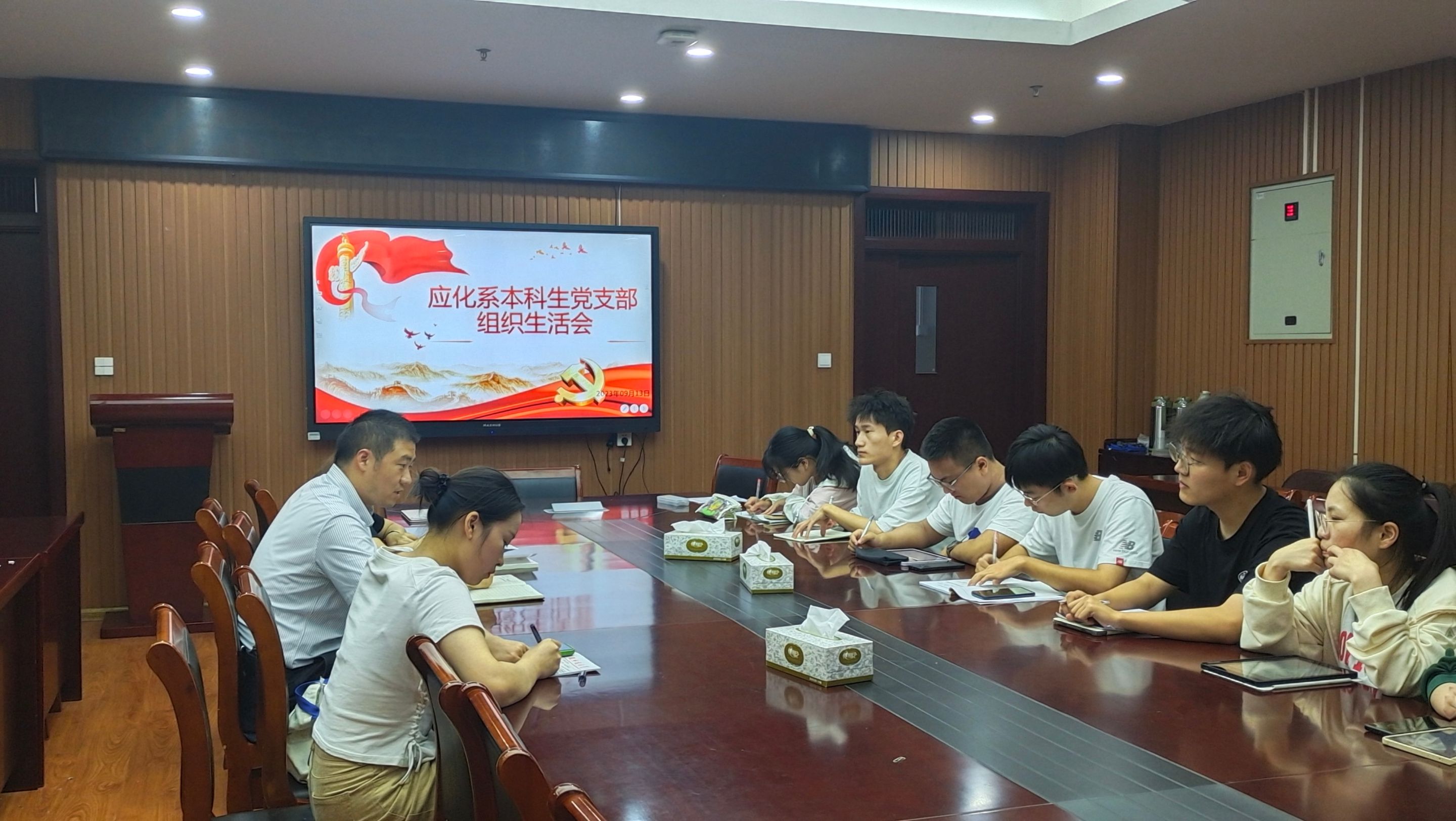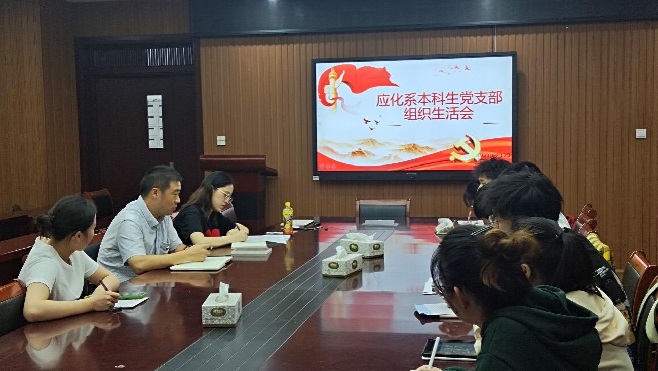应化系本科生党支部在礼勤楼702会议室召开学习贯彻习近平新时代中国特色社会主义思想主题教育专题组织生活会,支部全体党员参加,会议由党支部书记王芳同志主持,学院党委副书记李古州作为普通党员参加会议。