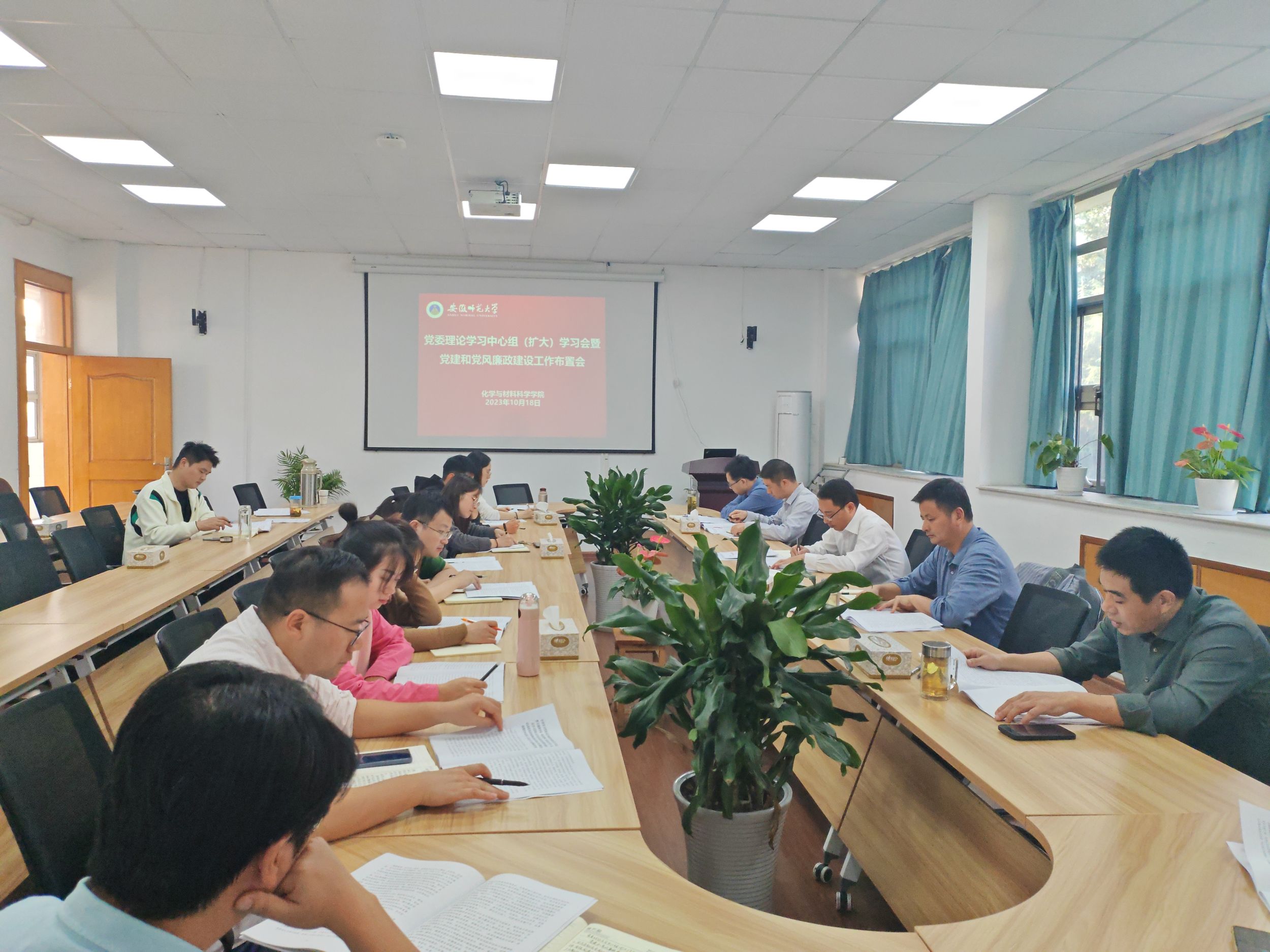 党委在学苑北楼9号楼205会议室召开党委理论学习中心组(扩大)学习会暨党建和党风廉政建设工作布置会,深入学习贯彻习近平总书记最新重要讲话和重要指示精神,传达中央和省委有关文件精神,开展专题研讨,研究部署学院党建和党风廉政建设工作,学院党委委员、纪委委员、全体党支部书记参会。会议由学院党委书记汪俊武主持。