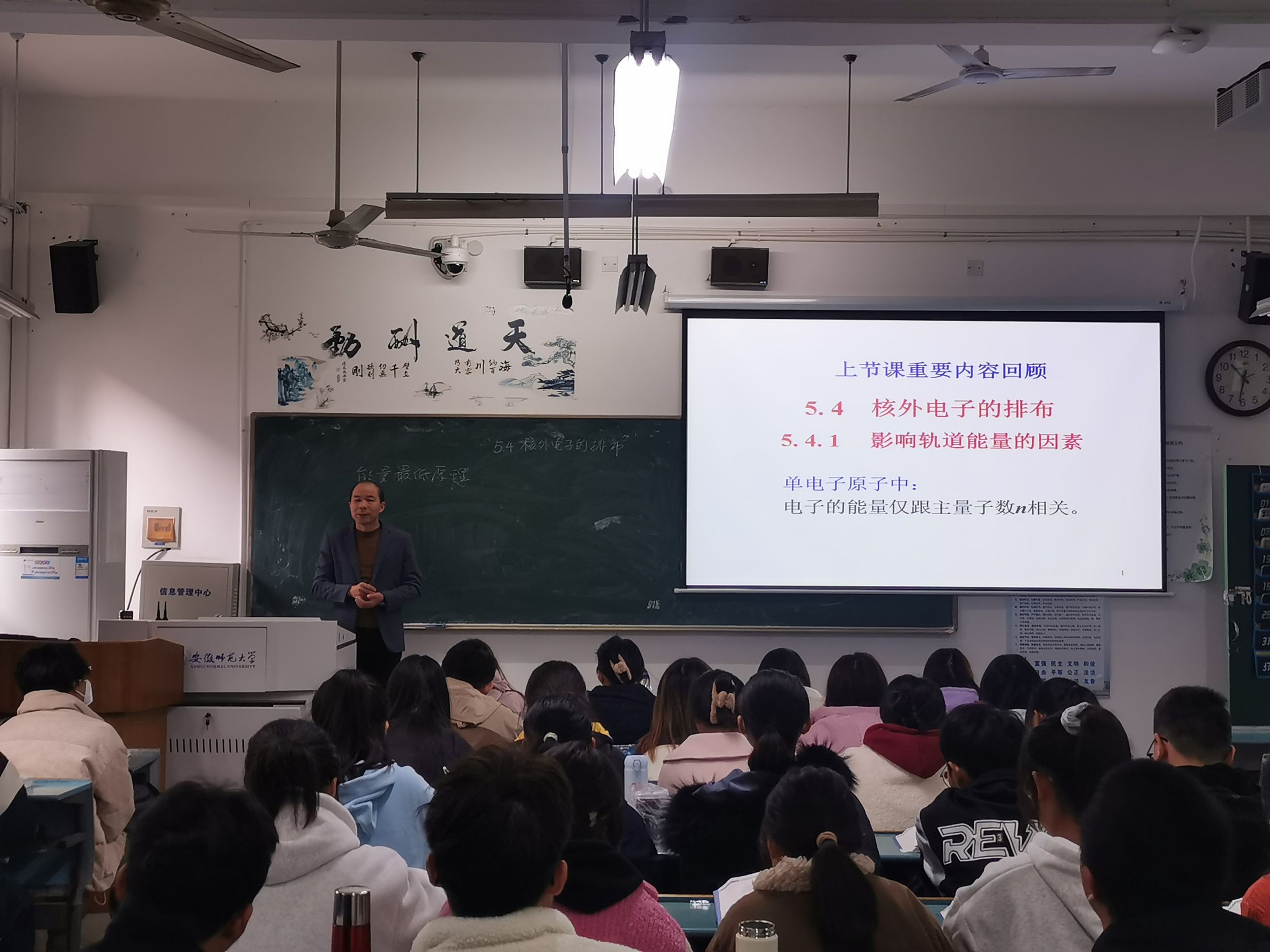 王正华教授在花津校区2070208教室为2023级化学师范1班、优师计划班的同学们上了《无机化学》课程思政教学示范观摩课。学院教学督导组、学院领导以及部分教师、辅导员观摩此次示范课。