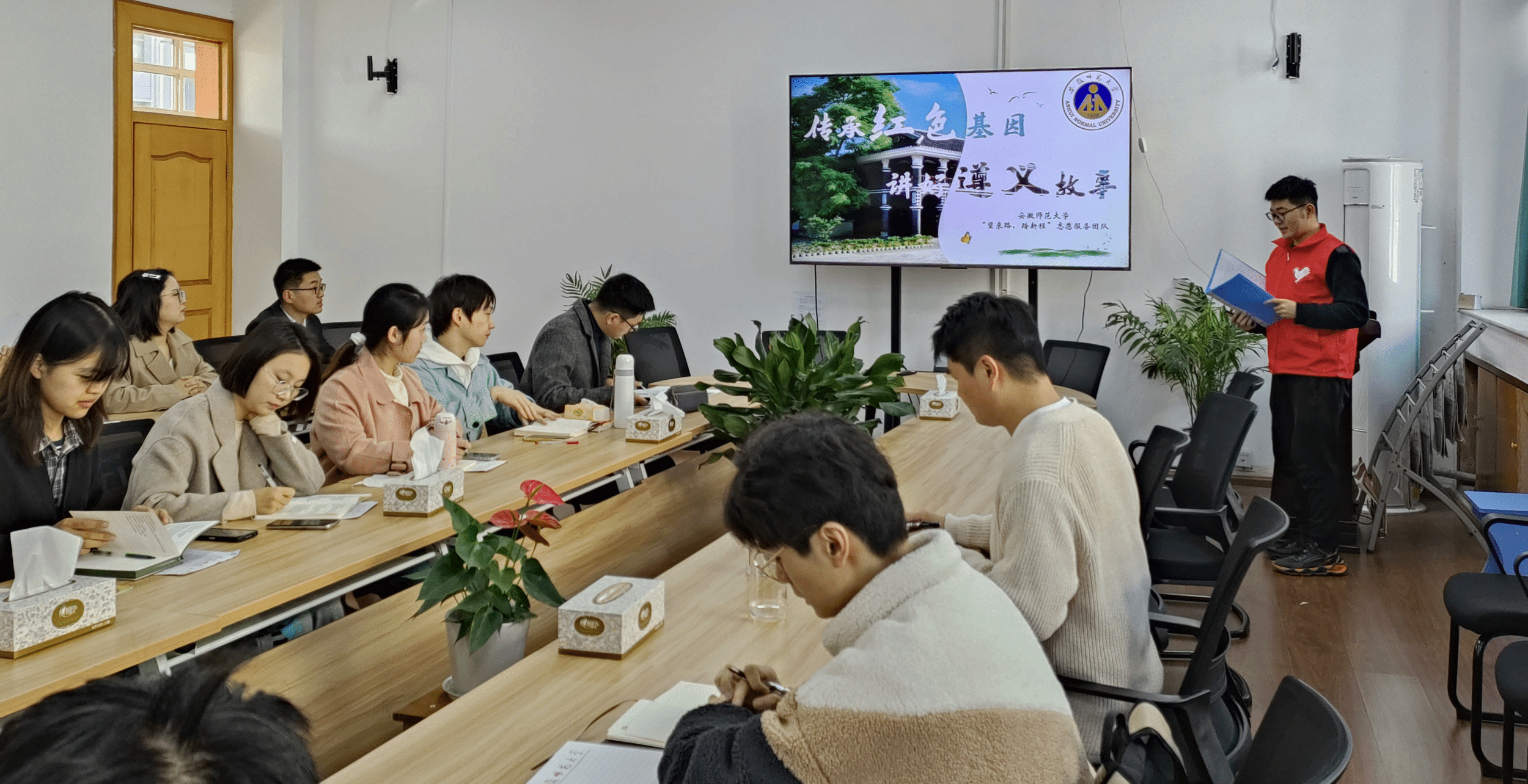 会议第一项议程,开展“传承红色基因,讲好遵义故事”微党课宣讲,主讲人陈子祥从遵义精神的内涵、历史背景和重要地位开始讲起,将“红军坟”——龙思泉战士的光荣故事娓娓道来,为支部党员带来一堂生动的“传承遵义精神”微党课,并鼓舞支部党员跟苦奋斗、不断前进,走进新时代。