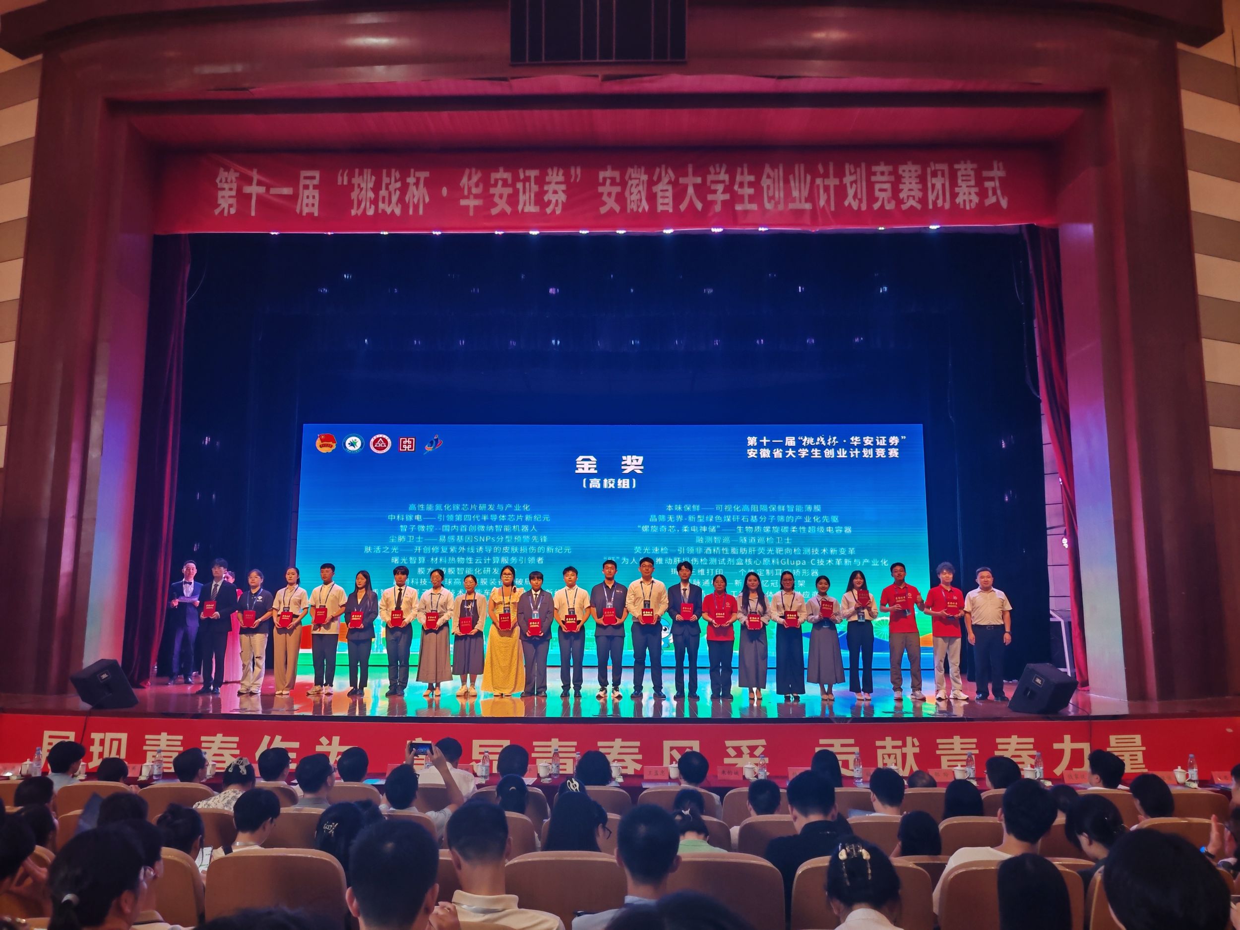 经过现场答辩激烈角逐,我院“晶筛无界—绿色新型煤矸石基分子筛的产业化先驱”团队(指导教师:梁俊、宋品、徐尚友、梁成、王霞)、“神来之‘吡’—新型吡啶碱分子筛催化剂的引领者”(指导教师:章青、梅冠东、王霞、张薇、王芳)两支团队荣获省赛金奖。“过往氢来—工业化制备产氢催化剂的领航者”(指导教师:王伟智、周映华、张鸿、黄家锐)、“‘磷’基应变—新型锂离子电池负极材料领航者”(指导教师:方臻、张小俊、李古州、陈静)、“抑菌膜力—复合抗菌凝珠薄膜开创者”(指导教师:张武、戴小妹、刘磊、陶勇)三支团队获得省赛铜奖。