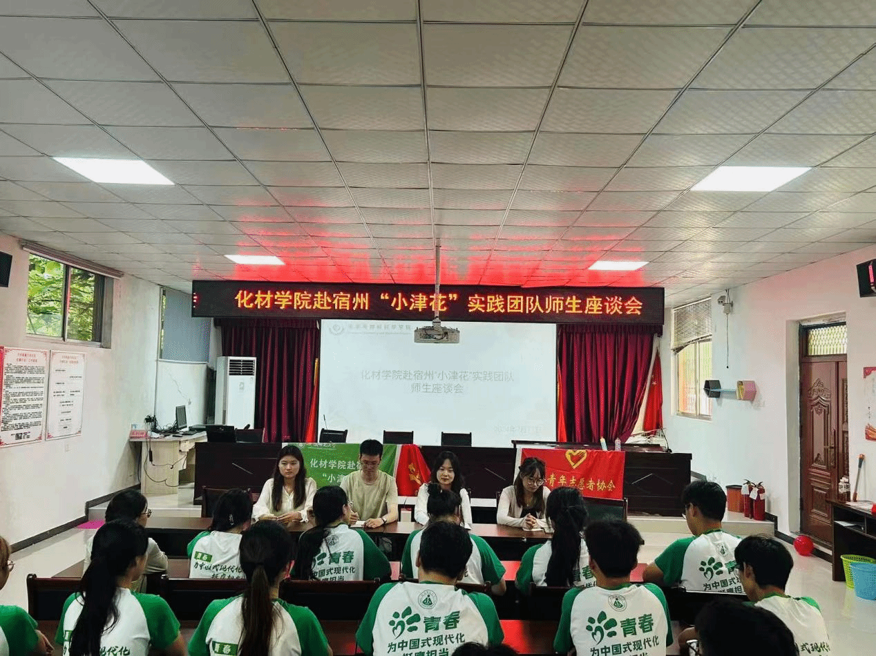 7月18日,学院团委副书记梁成、王霞等一行前往宿州市慰问了“小津花”本科生社会实践团队。在座谈会上,团队成员热情分享实践体会收获,纷纷感慨到“当好一名老师是这般的不易”“我们在实践中体会到教育学生带来的使命感,体会到被学生认可带来的喜悦感,体会到被家长信任的带来的责任感”等等。随后队长张岩总结到虽然实践过程中我们收获了很多,但我们还有许多不足需要不断改善,未来几天的实践将和团队成员一起努力克服困难。