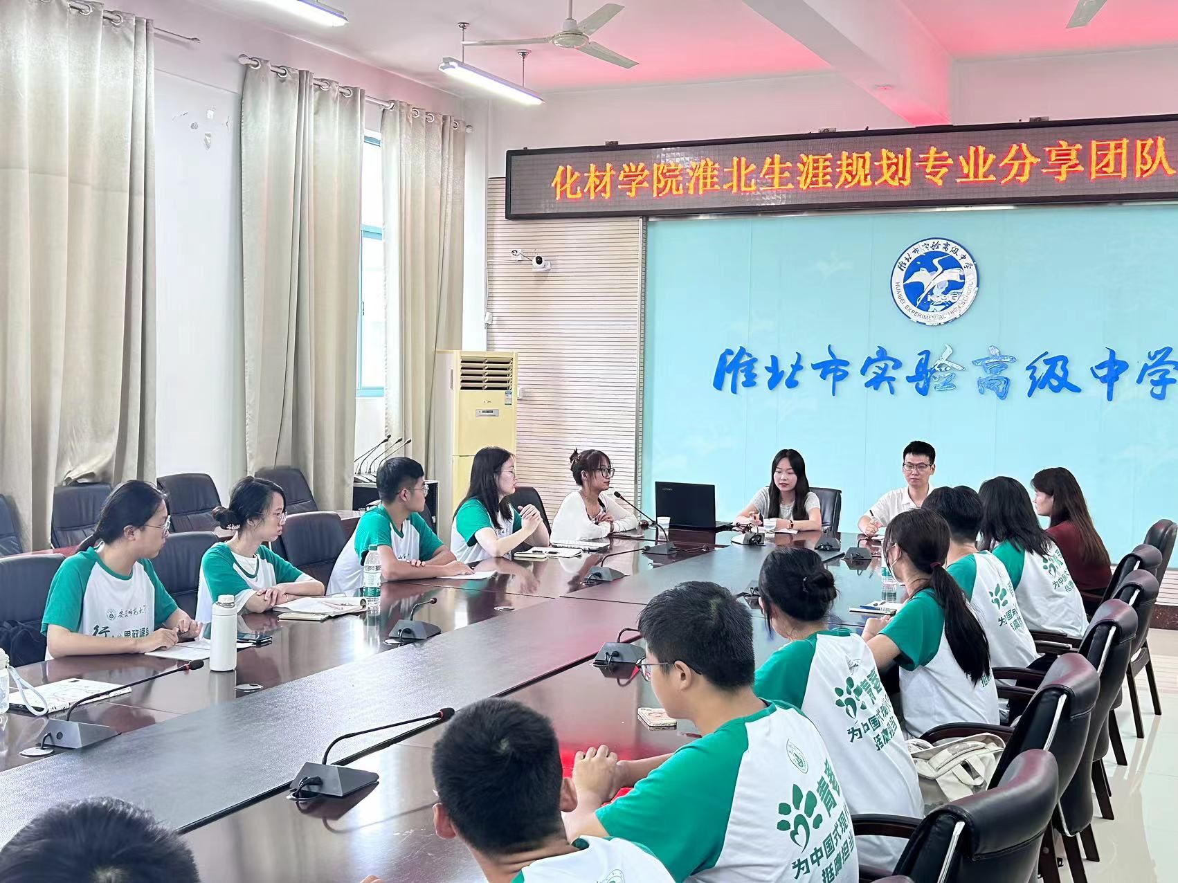 7月17日,学院团委副书记梁成、王霞等一行赴淮北市实验高中慰问“助流入海,专业扶技”生涯规划专业分享本科生社会实践团队,并召开暑期社会实践团队师生座谈会。在座谈会上,队长郜子闻向各位老师汇报实践开展的情况以及遇到的问题,团队成员分享在实践过程的感悟,表示在本次社会实践的过程中不仅学习了很多专业知识,也锻炼了自己的表达能力,他们将珍惜这次宝贵的实践经历,继续努力学习,不断进步。随后指导老师就社会实践遇到的问题给出了相关建议,希望在后续的实践中不断改善。