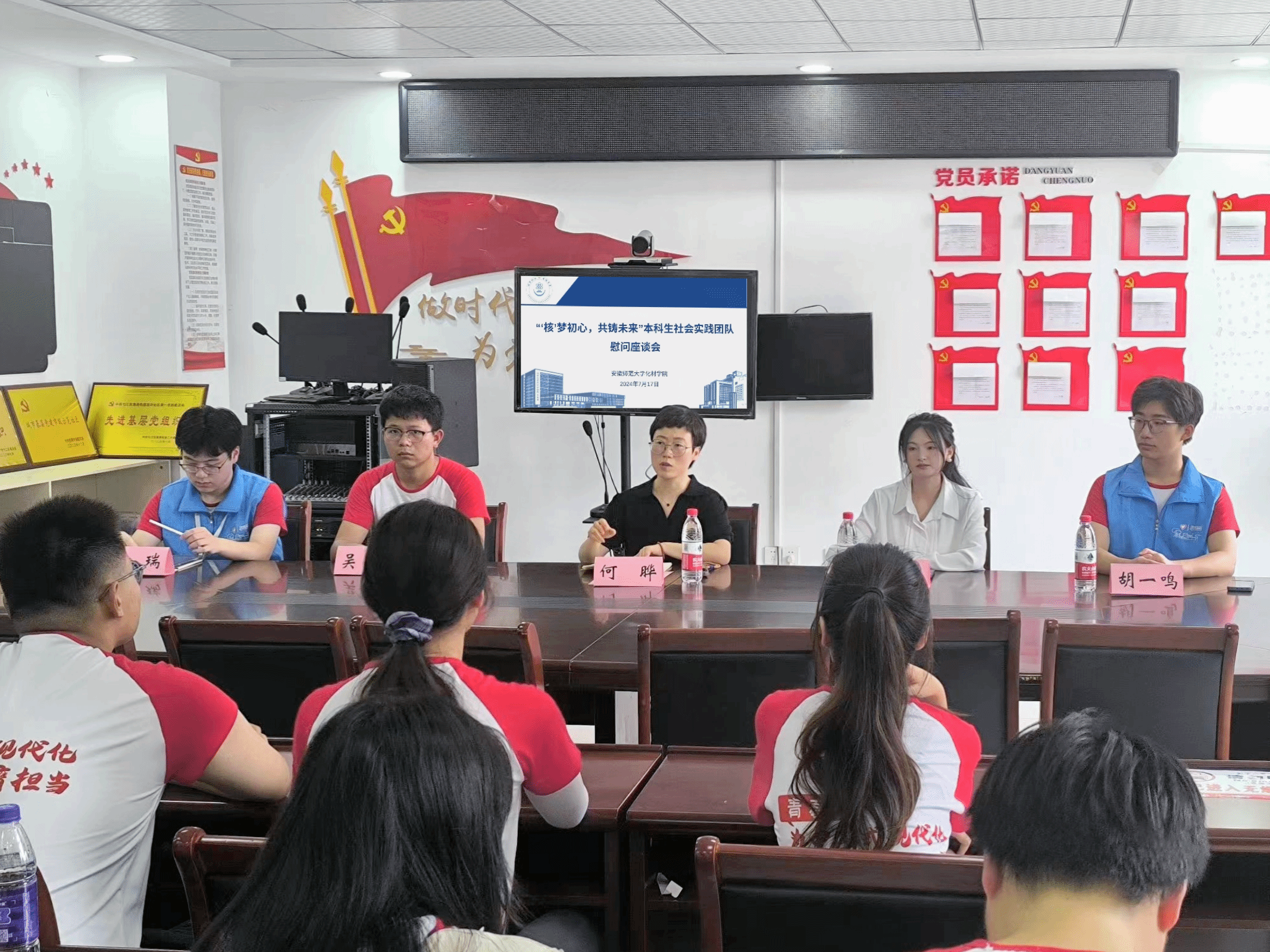 7月10日,学院团委副书记王霞及辅导员朱梦茹、朱文棋、李汝一行前往宣城市泾县慰问“泾溪百里,‘弋’脉相承”赴宣城、芜湖青弋江保护调研暑期社会实践团队。座谈会上,团队负责人陈浩就实践活动开展情况进行了汇报,队员们也分享了自己的实践心得和成长体会,表示想扎根实践课堂,以实际行动去了解社会,融入社会,服务社会,真正践行“青春为中国式现代化挺膺担当”的理念。团队指导老师王霞充分肯定了团队的实践成果,同时指出近三天的暑期社会实践进程中所出现的问题并给出相关建议。她希望同学们能够把此次暑期社会实践当做是增长见识,了解社会的重要途径,能够多听多想多做,还着重强调了安全问题,呼吁同学们一定要强化安全意识,严守安全底线,在外实践遇恶劣天气要时刻注意安全。