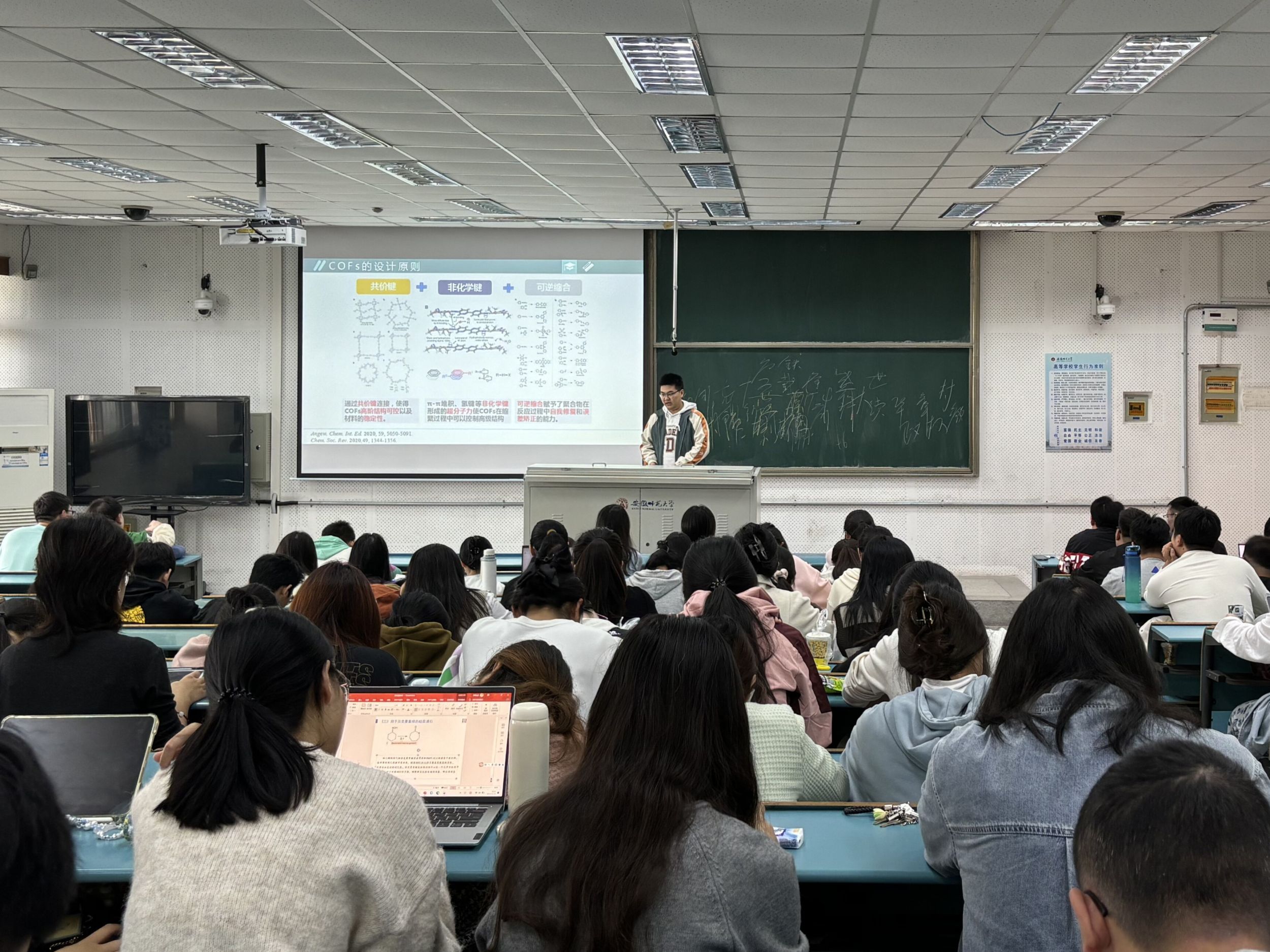 报告结束后,主讲人谢涛寄语研一同学们要志存高远,知行合一,不负青春,不负韶华,弘扬和践行“厚重朴实、至善致远、追求卓越、自强不息”的师大精神,驾青春之舟、逐梦前行,度过充实的研究生时光!