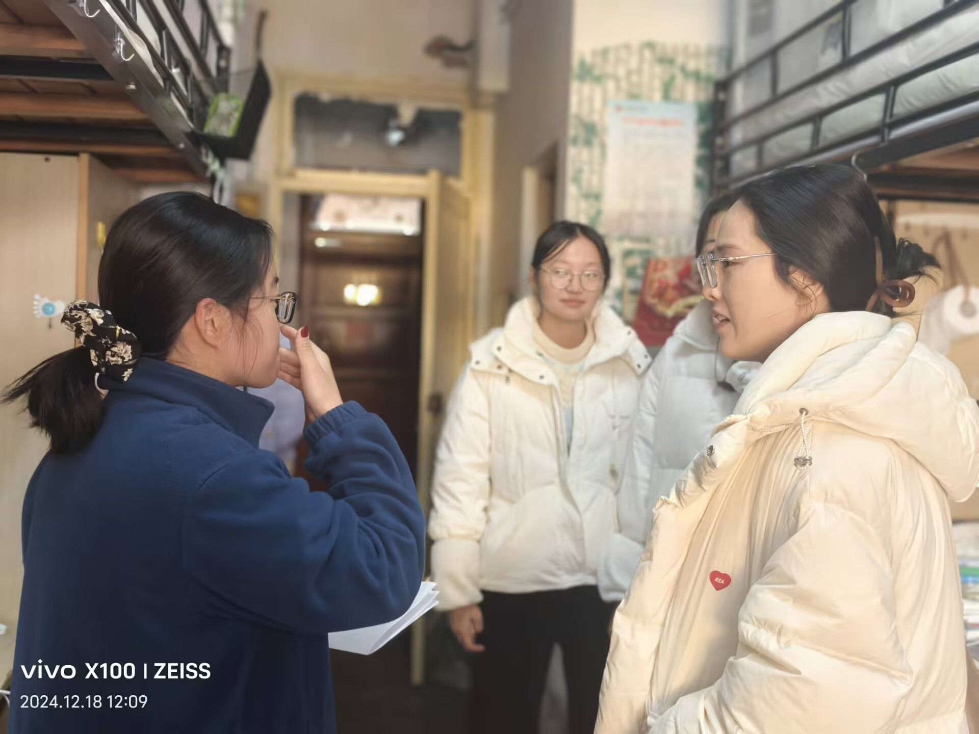 领导班子、辅导员深入冬和园59栋“一站式”学生社区及各年级宿舍开展冬季宿舍安全卫生检查活动。