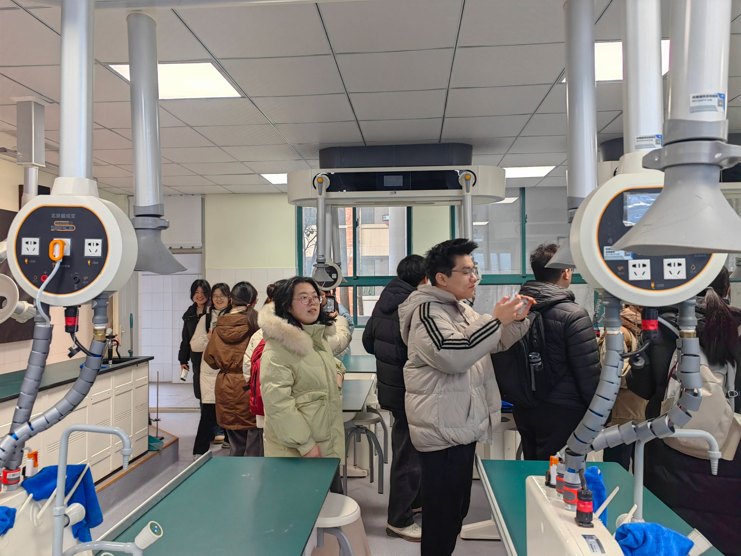 师生,并带领大家参观了学校的化学、物理、生物及数字化实验室。实验室里,各类先进的实验设备摆放整齐,李明老师详细介绍了仪器的功能与使用方法,以及实验室在日常教学和科研活动中的重要作用,同学们纷纷驻足聆听,对中学化学实验教学的实际场景有了直观的认识,不少同学还积极提问,与李老师进行了深入的交流,表现出对实验教学的浓厚兴趣。