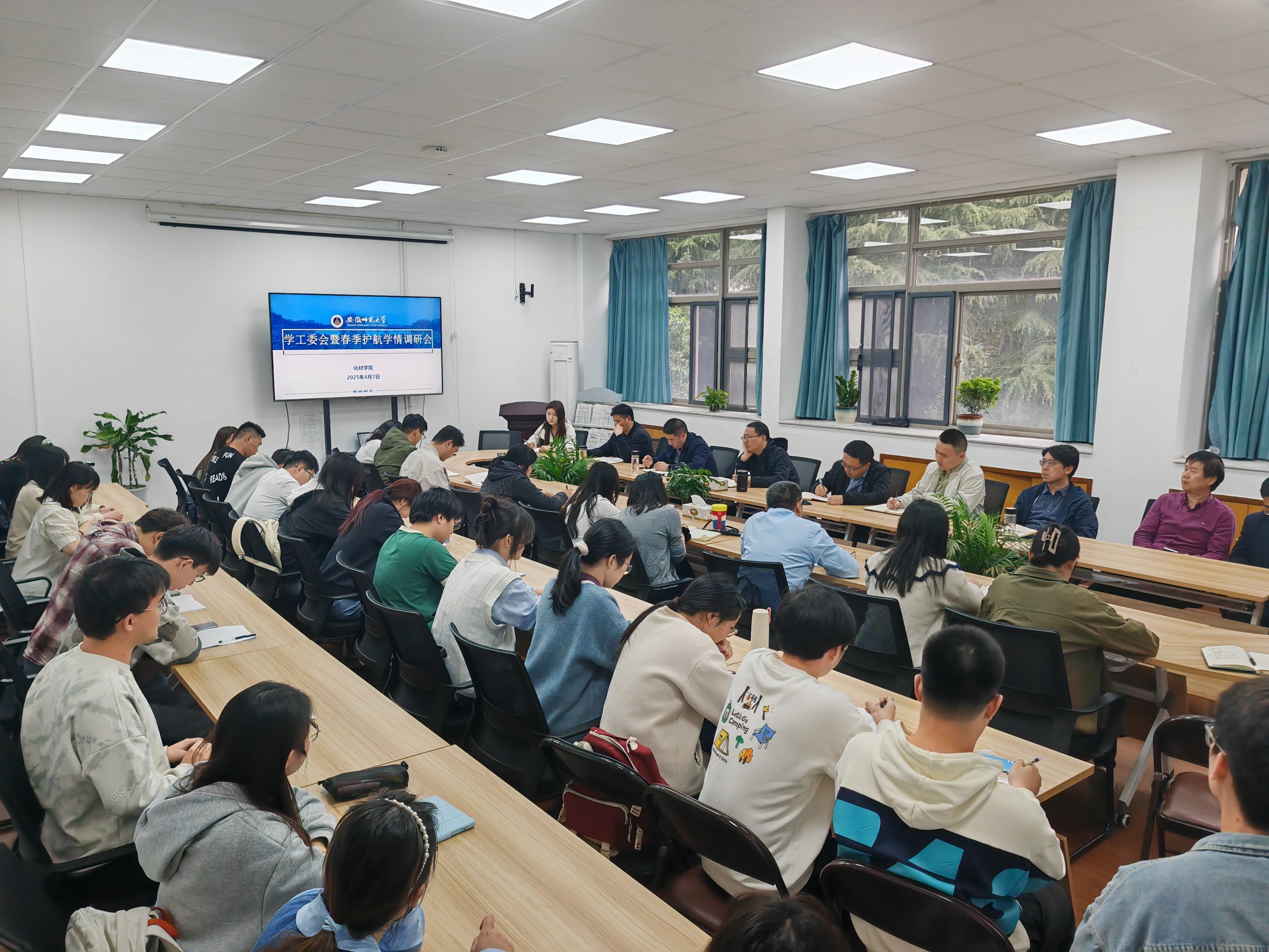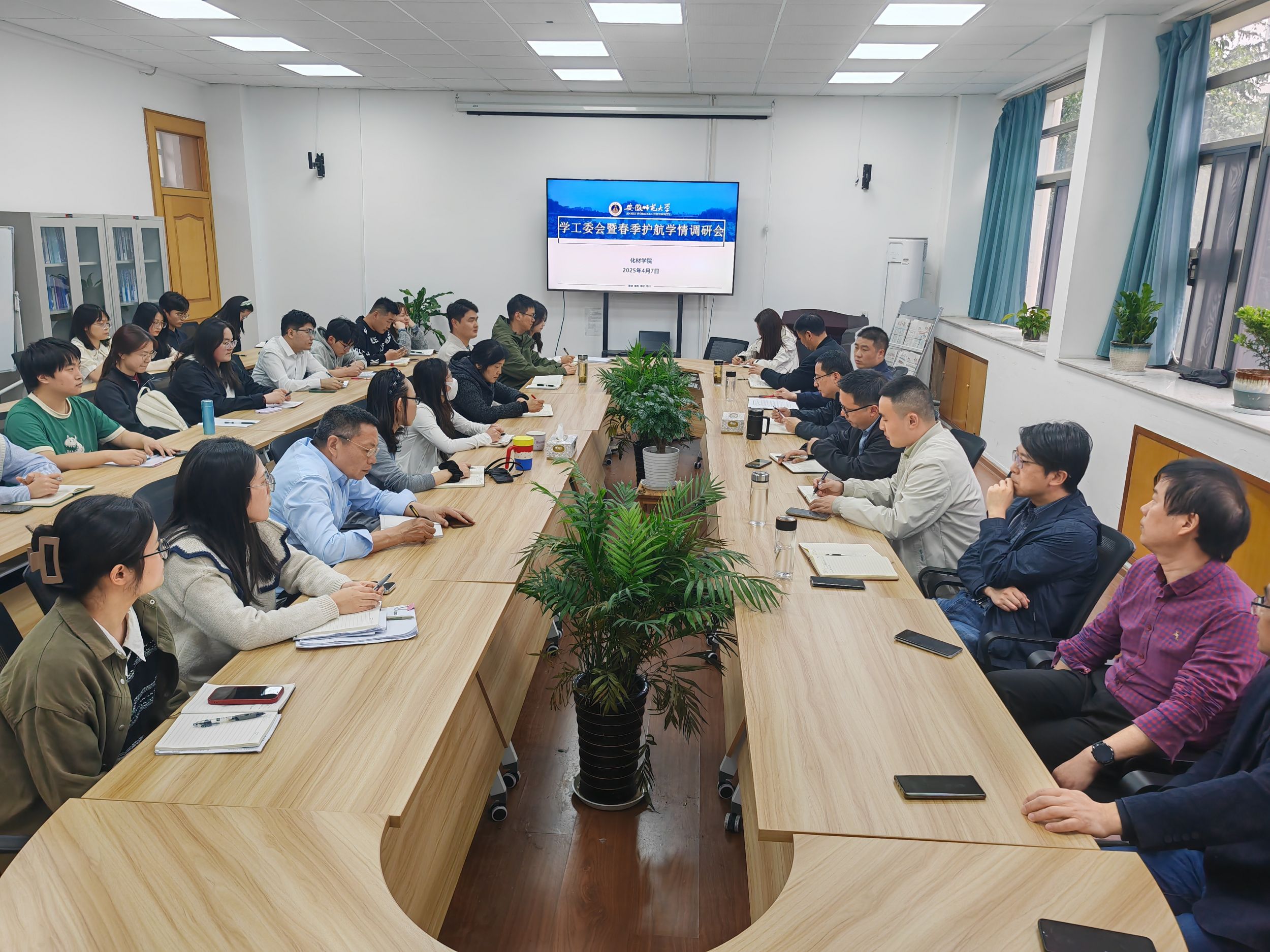 召开学生工作委员会会议(总第14期)暨春季学生护航学情调研会,学院领导班子、各专业负责人、本科生班主任、全体专兼职辅导员及各班级学生骨干共同参会,会议由学院学工委常务副主任、党委副书记李古州主持。