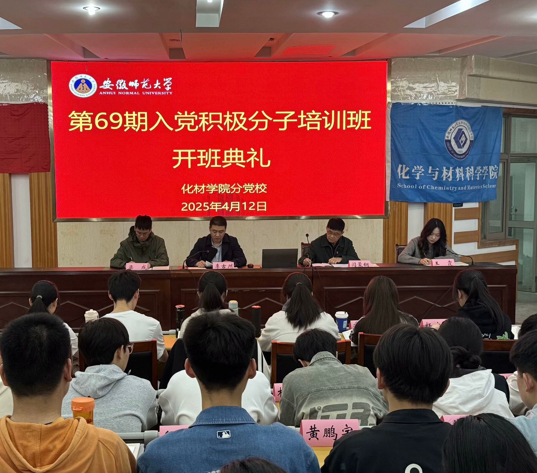 党委副书记李古州、分党校指导老师闫蒙钢、团委副书记王霞、培训班班主任梁成及全体学员参会。活动由王霞主持。