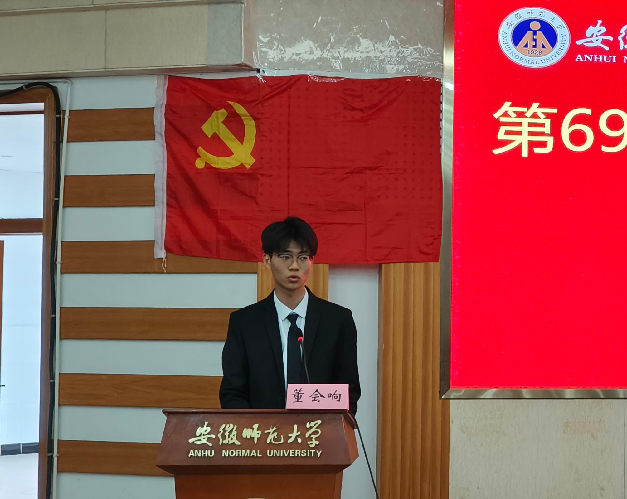 院团委书记梅冠东以《三大行动计划解读》为主题,详细解读了《安徽师范大学大学生护航行动计划实施纲要(2023-2026)》《2025年大学生护航行动计划工作要点》。他分别从思想护航、学习护航、生活护航、情感护航、身心护航五方面,介绍了学校和学院的护航举措与特色做法。他指出,作为入党积极分子,在日常的学习与生活中,要发挥先锋模范作用,做好护航计划的“宣传员”,为推动学院高质量发展奉献自己的青春力量。