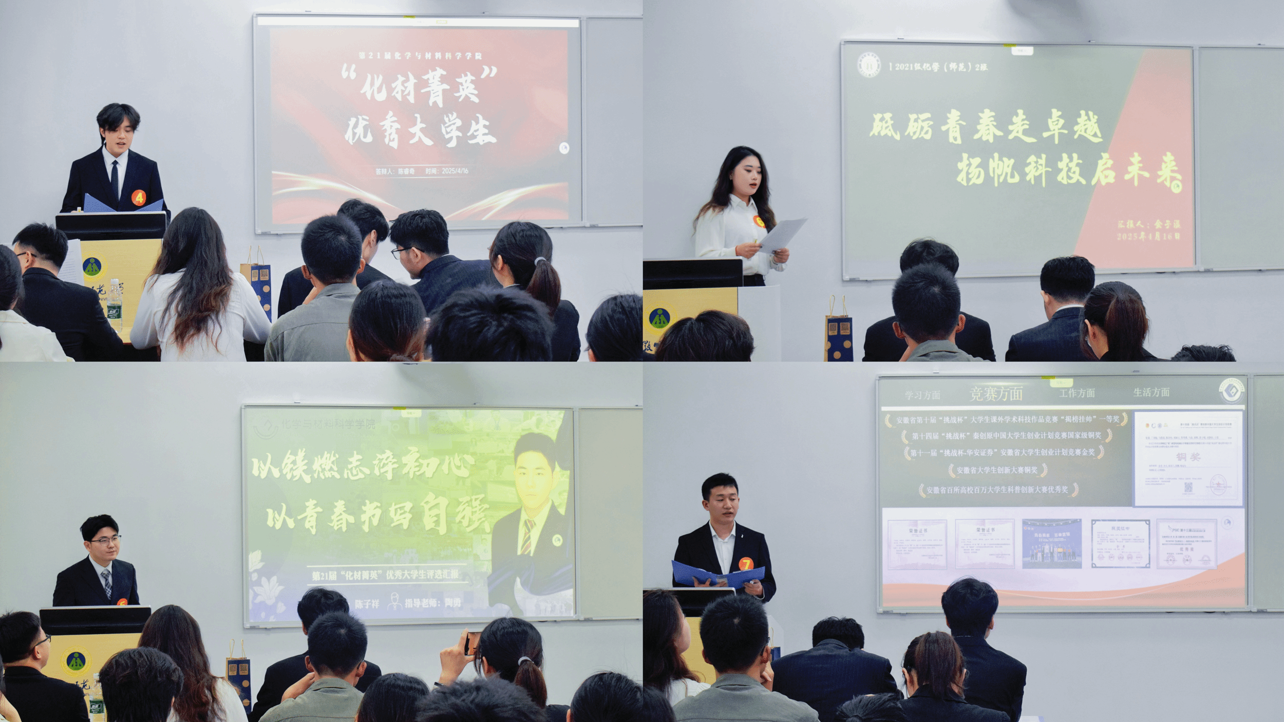 “化材菁英”展评会不仅为优秀大学生提供了展示自我的平台,更在广大学生群体中树立了榜样,激发了更多同学对学习科研实践的热情与追求,有利于建设优良学风和弘扬优秀精神品质,激励着更多大学生在学术与实践的道路上砥砺前行,书写属于自己的精彩篇章。