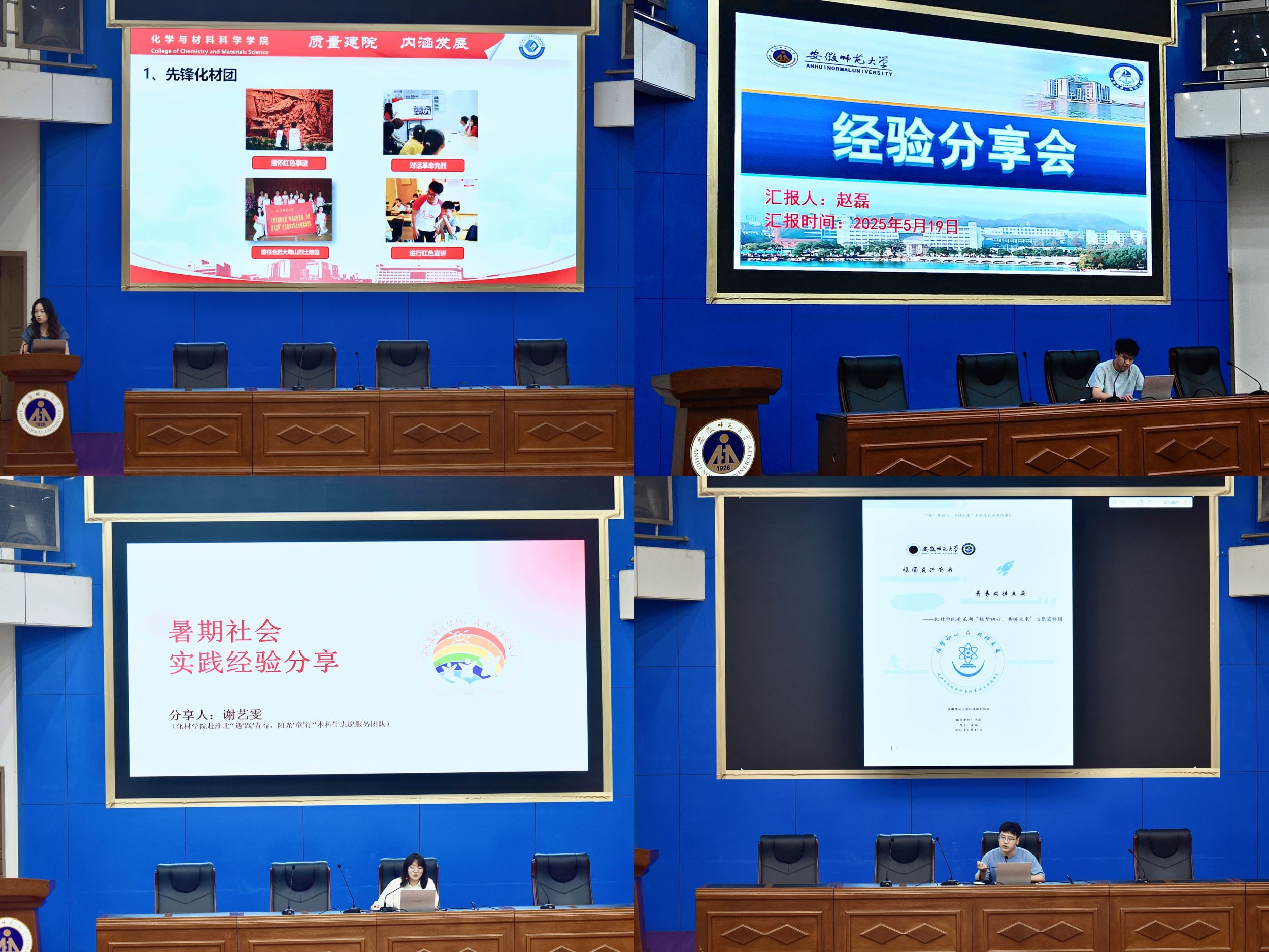 往届优秀实践团队队长黄瑞、赵磊、谢艺雯依次从选题策划、团队组建、实践安排等方面分享了暑期社会实践活动经验,强调实践前期要充分准备,实践过程要注重实践学习,并且要创新实践内容形式,在实践中提升自我,奉献社会。