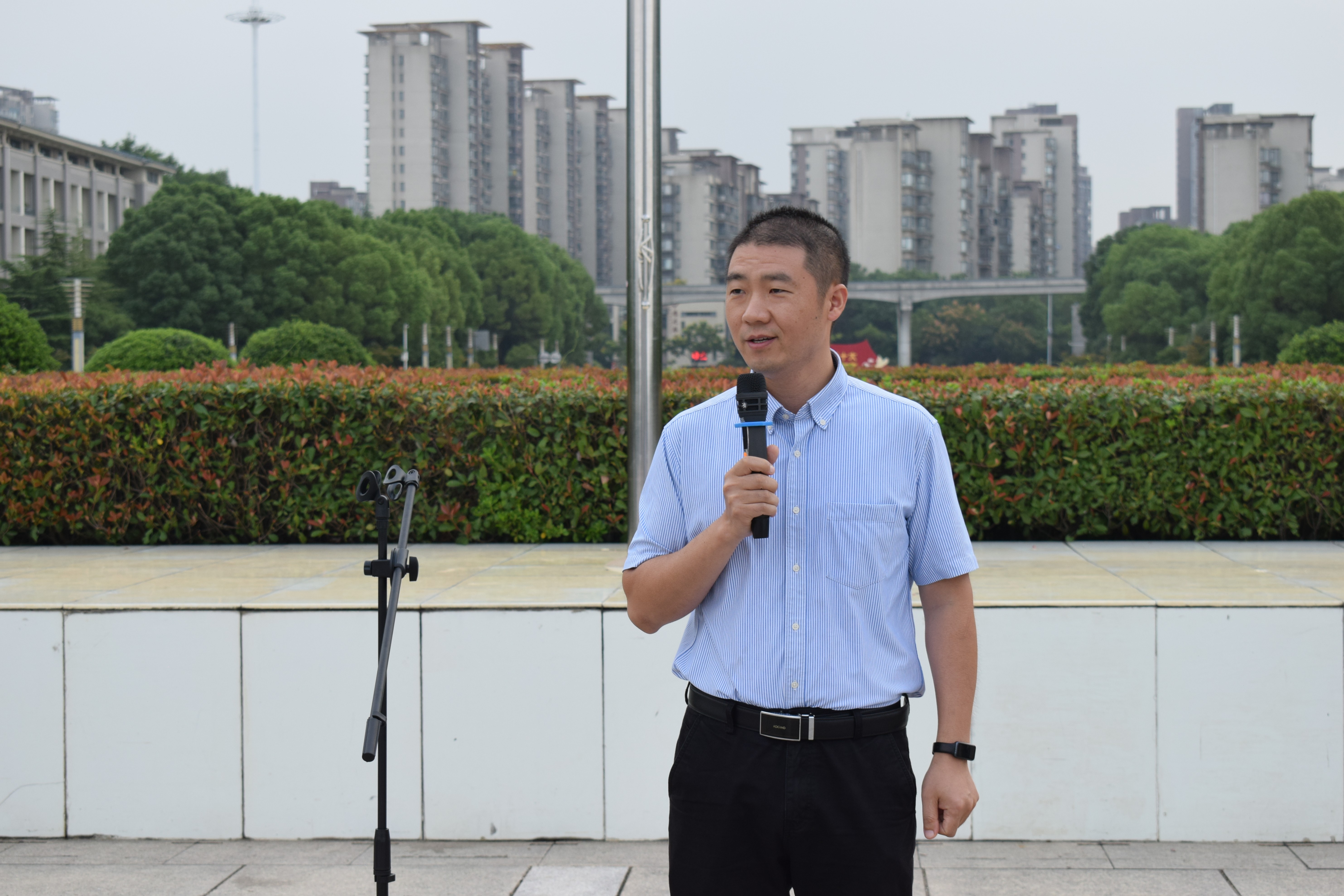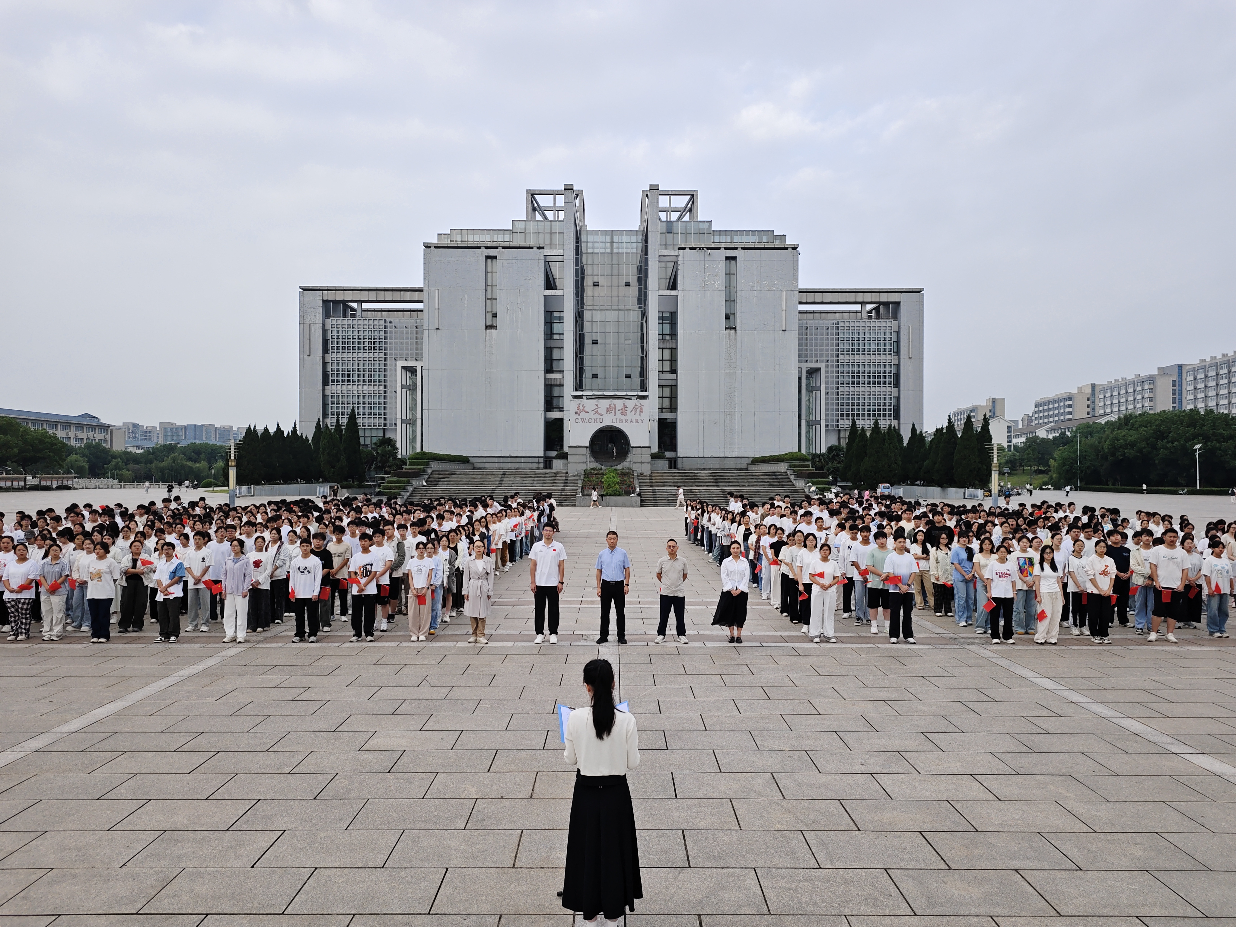 于敬文图书馆东广场举行2025级国旗下的思政课活动。学院党委副书记李古州、教师代表华赞、2025级新生辅导员梅冠东、张薇、王婕及2025级全体本科生参加活动。活动由2025级化学工程与工艺专业汪紫萱同学主持。