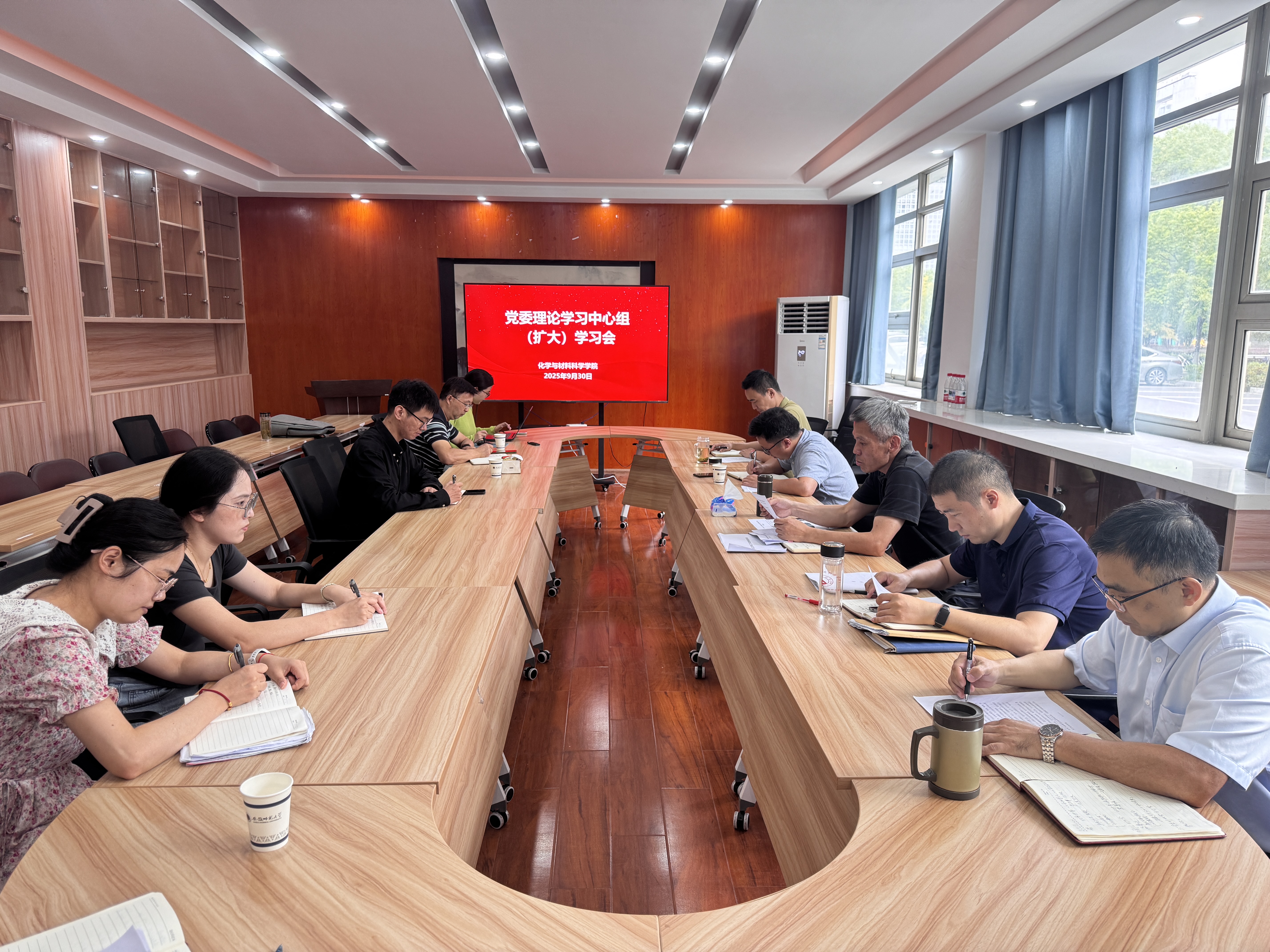 在学苑南楼6号楼106会议室召开党委理论学习中心组(扩大)学习会,深入学习贯彻习近平总书记最新重要讲话和重要指示精神,专题研学《习近平谈治国理政》第五卷,研究部署国庆节假期重点工作。学院党委委员、纪委委员、班子成员、部分党支部书记参加会议。会议由院党委书记梁齐军主持。