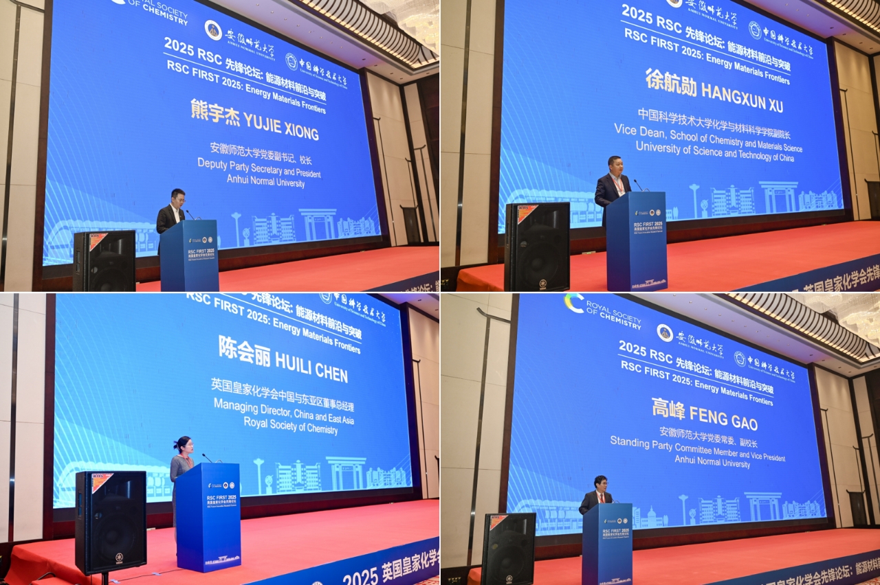 2025年10月31日至11月2日,由英国皇家化学会(RSC)、安徽师范大学、中国科学技术大学和英国皇家化学会旗下EES系列期刊共同主办的“2025 RSC先锋论坛:能源材料前沿与突破 (RSC FIRST 2025: Energy Materials Frontiers)”在芜湖召开,来自国内外逾300位知名专家、中青年学者参加了本次先锋论坛。