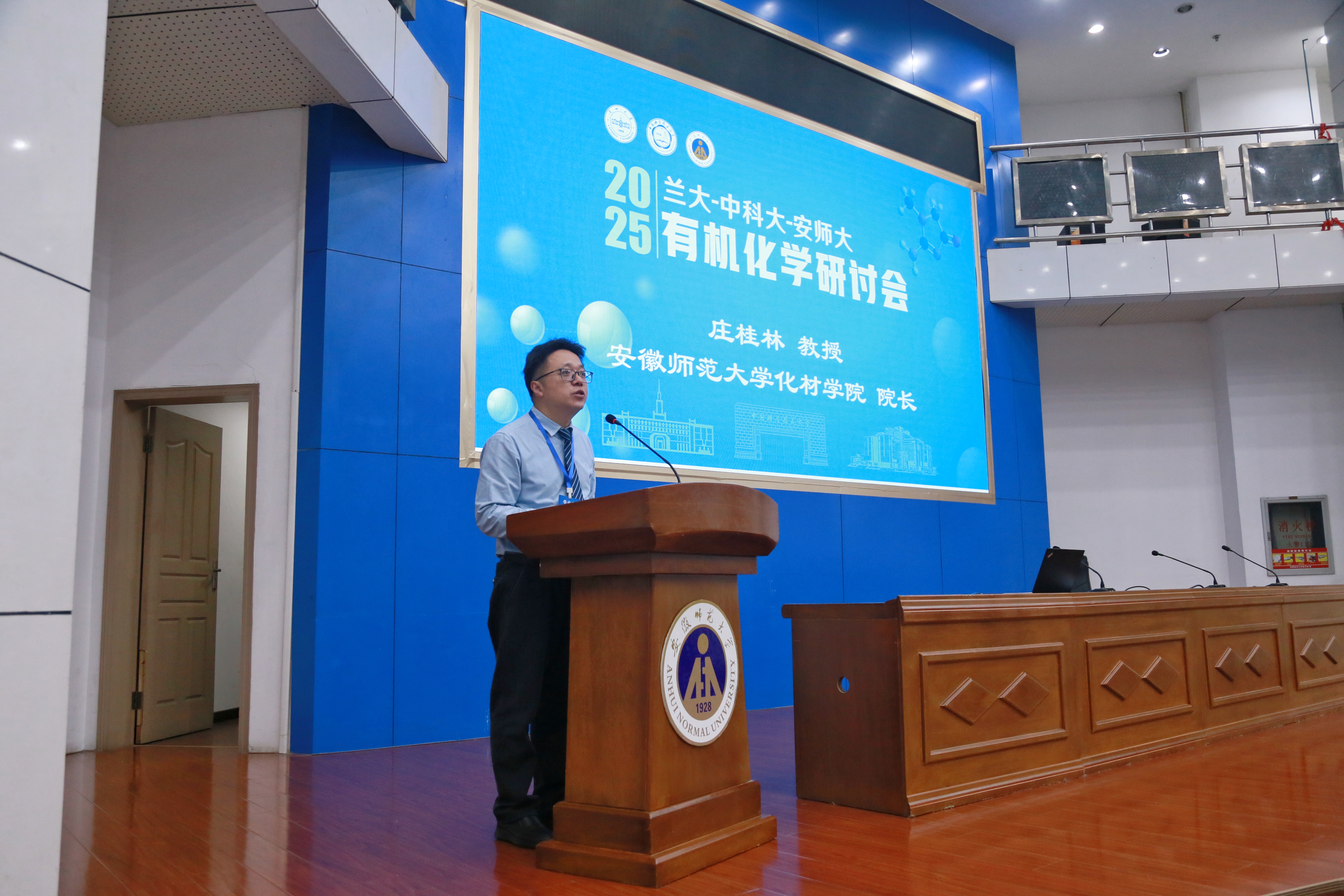 庄桂林院长致辞,就学院整体情况作了介绍,并对出席研讨会的各位学者表达了热烈欢迎。曾长期在兰州大学和中国科学技术大学工作的特邀嘉宾郭庆祥教授分享了关于兰大化学精神、科研创新、未来化学的真知灼见。