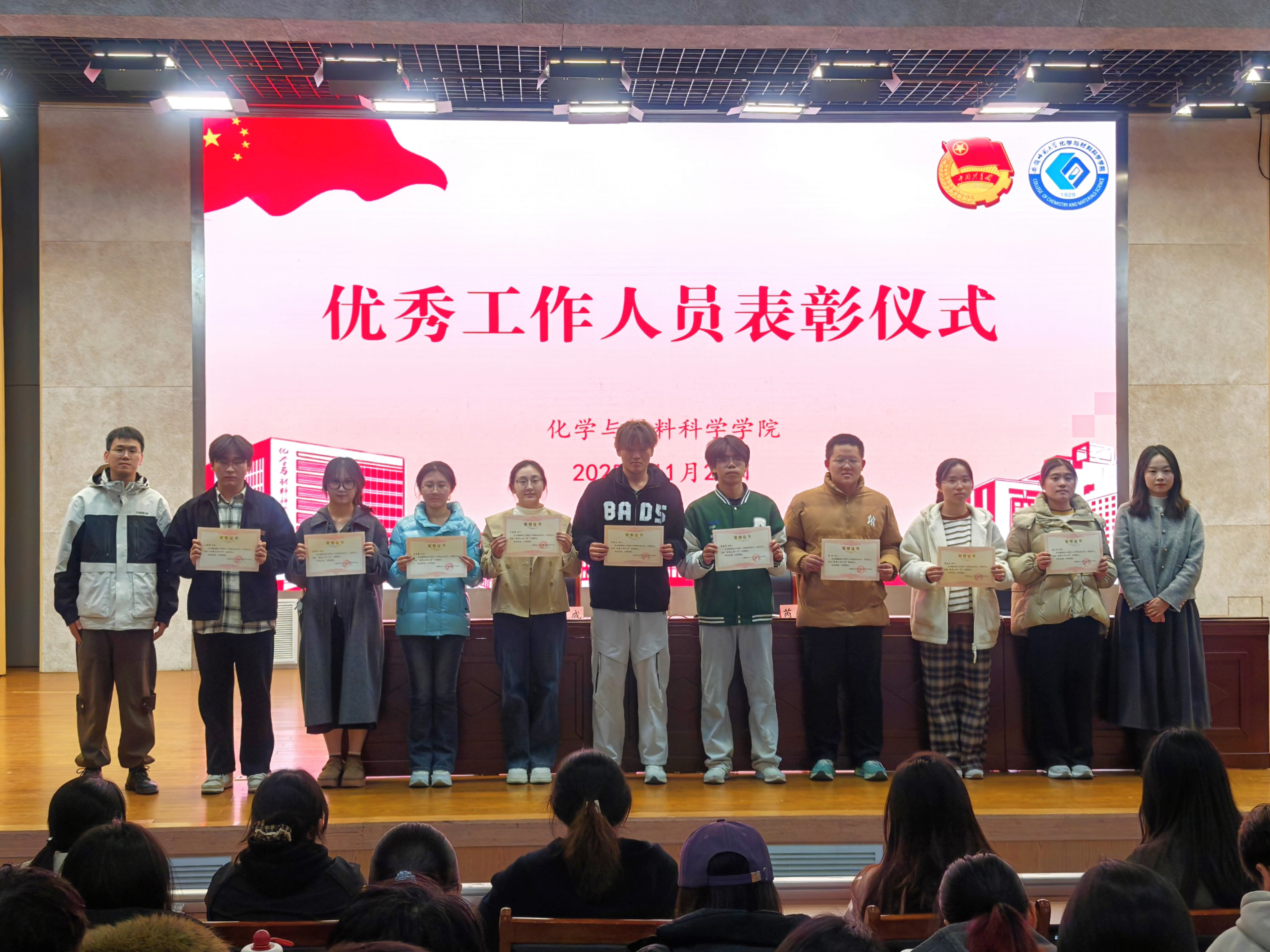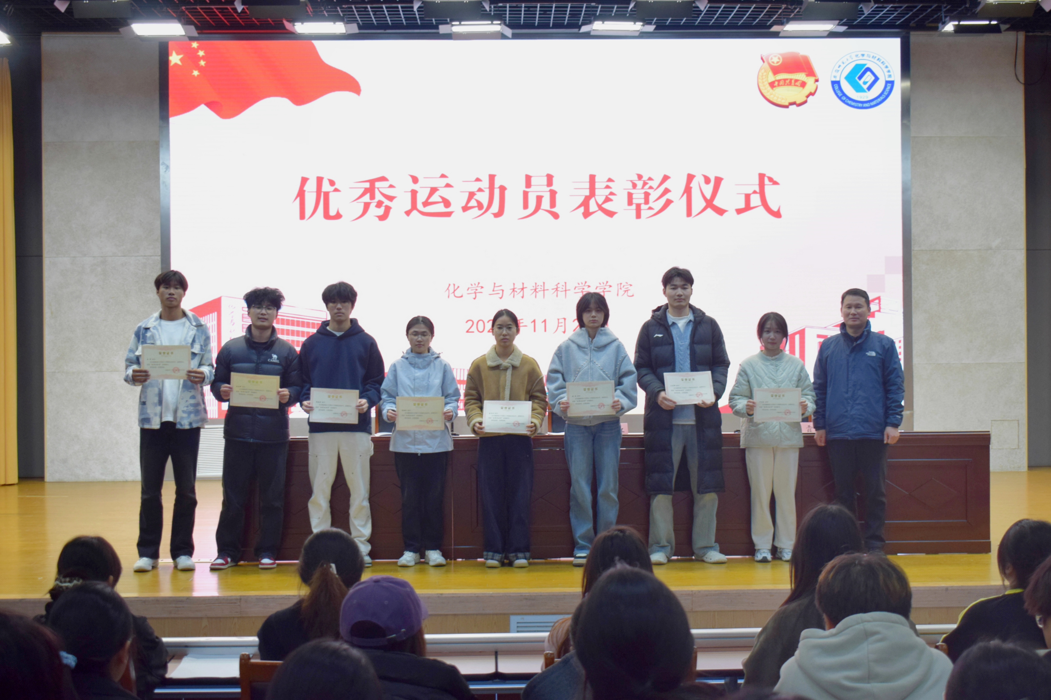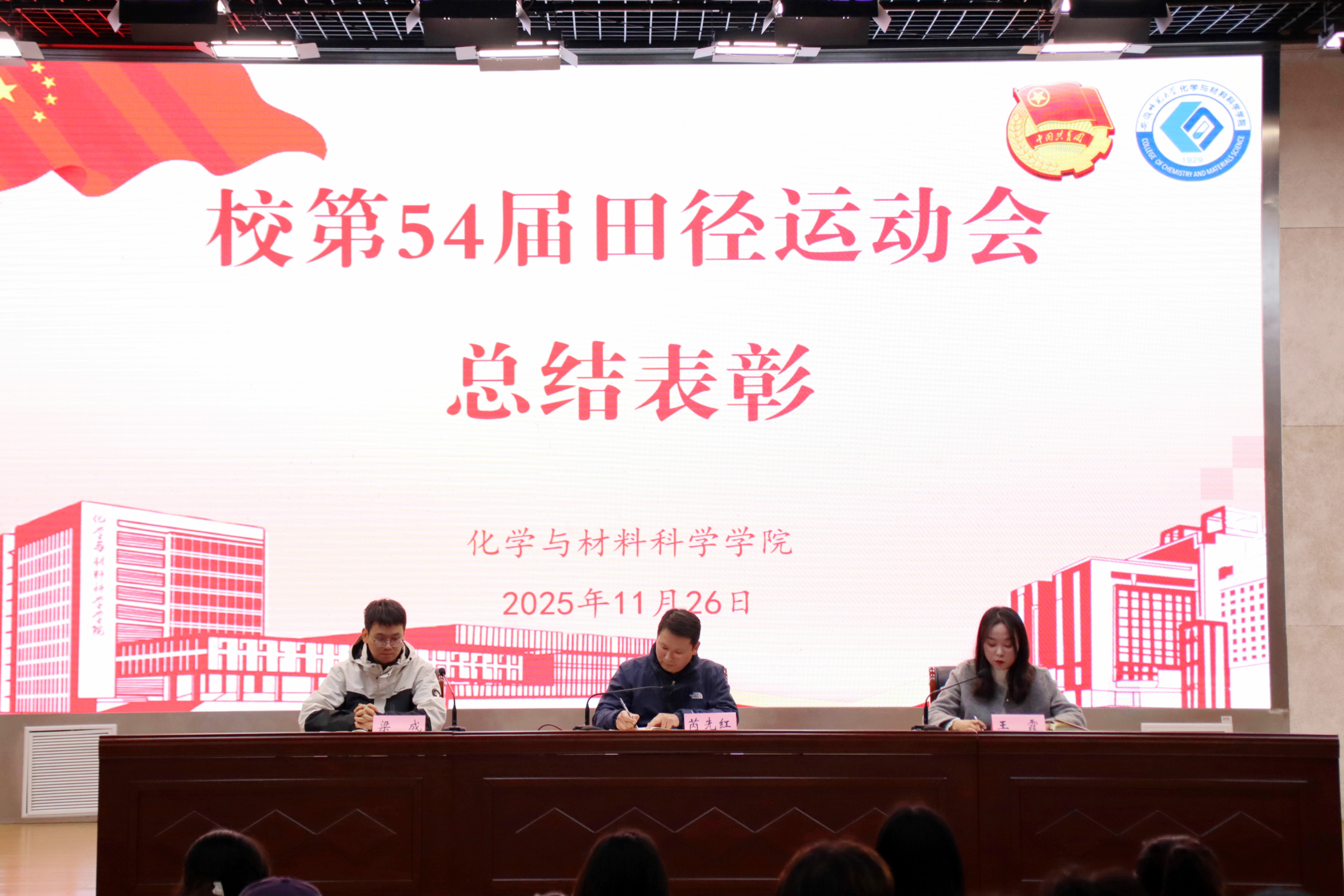 举行校第54届田径运动会表彰大会,学院党委副书记芮先红、团委书记王霞、团委副书记梁成出席本次会议。大会由院学生会主席团成员孟坤伦主持。