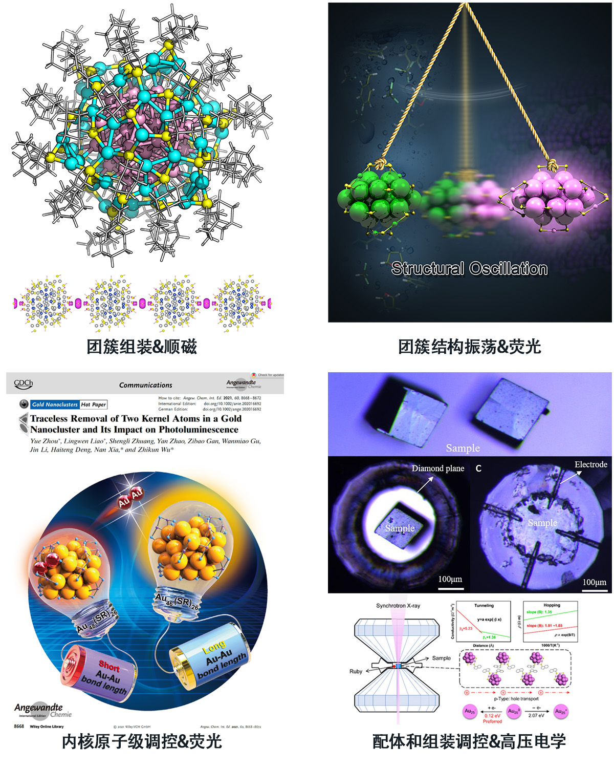 3. Yue Zhou,# Dong Chen,# Wanmiao Gu,# Wentao Fan,# Runguo Wang, Liang Fang, Qing You, Shengli Zhuang, Guoqing Bian, Lingwen Liao, Ziyan Zhou, Nan Xia,* Jun Yang,* Zhikun Wu,* Chemical Synthesis of ~1 nm Multilevel Capacitor-like Particles with Atomic Precision, Angew. Chem. Int. Ed. 2025, 64, e202420931.